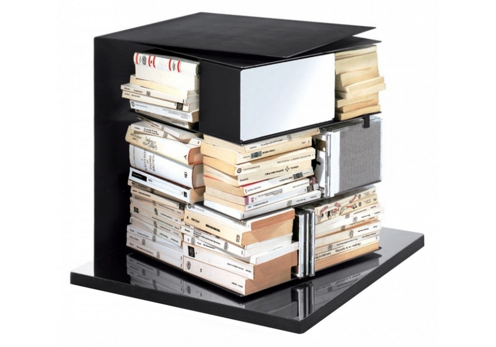 Ptolomeo X4 Short conçue par Bruno Rainaldi pour Opinion Ciatti est une bibliothèque / table de chevet / table basse en acier avec plateau supérieur fixe. Trois étagères et compartiment de rangement, pivotant à 360 °. Pieds réglables. Disponible en différentes finitions.