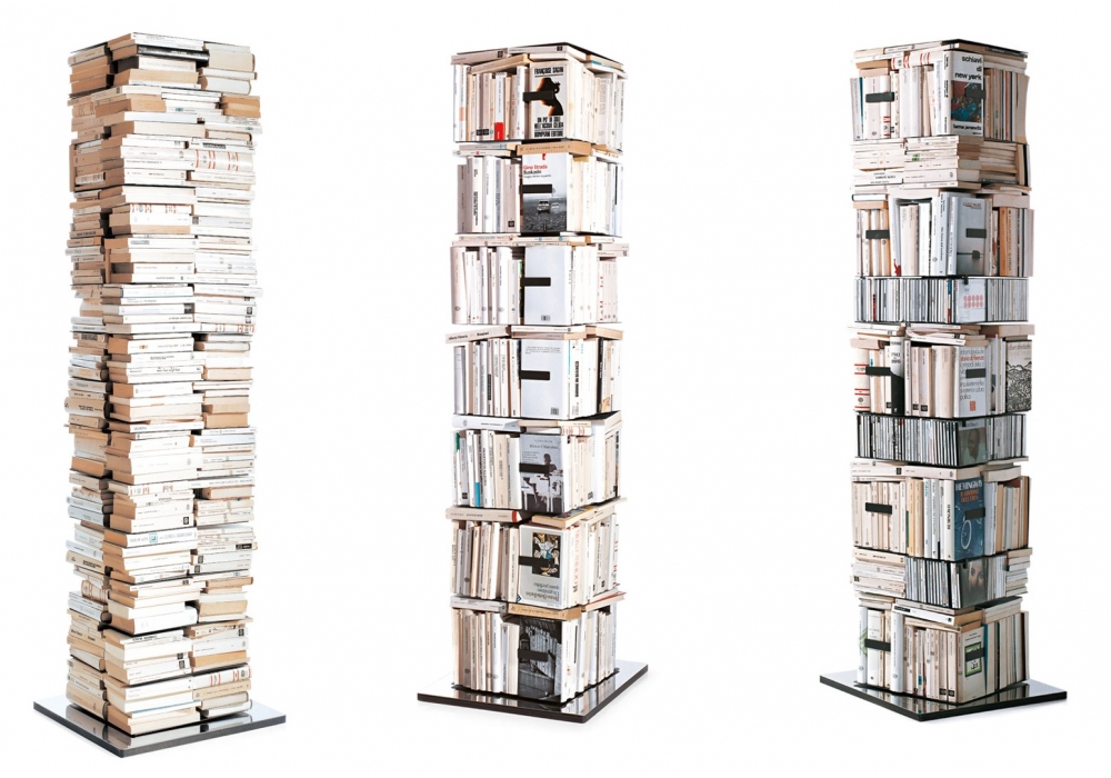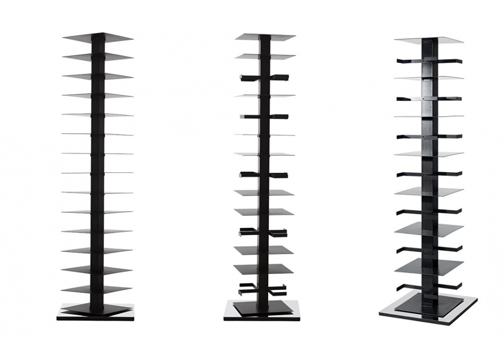 Ptolomeo X4 conçue par Bruno Rainaldi pour Opinion Ciatti est une bibliothèque haute autoportante verticale en acier, pivotante à 360 °. Pieds réglables. Disponible en différentes finitions et modèles.