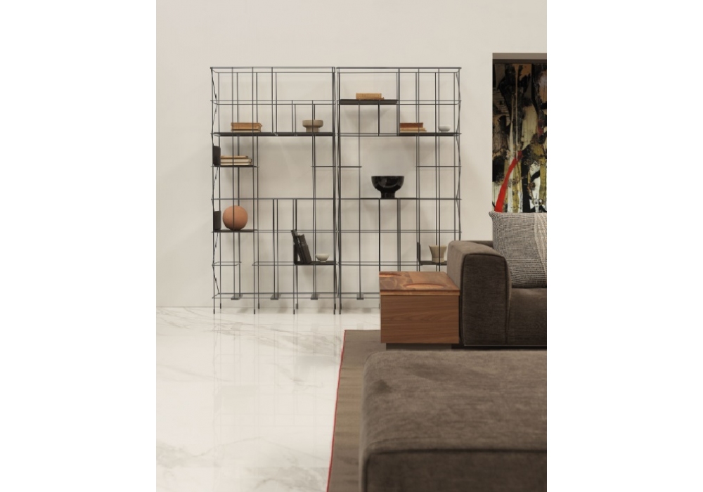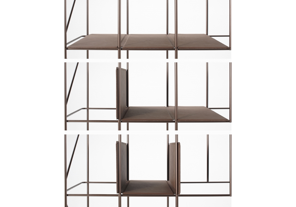 Network conçue par Neuland Paster&Geldmacher pour Casamania & Horm est une bibliothèque en métal peint. Étagères thermoformées amovibles en éco-cuir, équipées d'un aimant pour le blocage sur la structure de la bibliothèque. Deux ou plusieurs modules peuvent être placés côte à côte et reliés à l'aide d'un clip fourni dans le kit de montage. Pieds réglables.