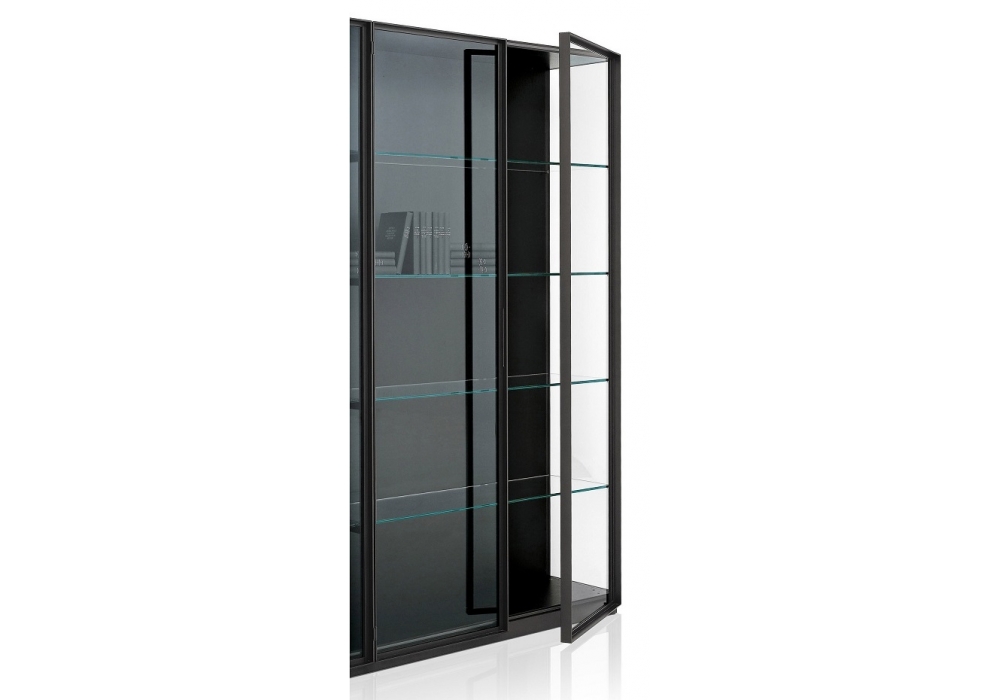 Ex-Libris conçu par Piero Lissoni pour Porro est une bibliothèque élégante. La structure autoportante est composée de montants peints en noir et d'un piètement en mélaminé et d'un plateau en chêne anthracite. Les portes sont en verre transparent ou "fumé" tandis que les étagères sont en verre transparent extra-clair. Les fonds sont en mélaminé chêne anthracite, verre transparent ou "fumé". Il est également possible de placer des spots sur le dessus de la structure pour éclairer la bibliothèque elle-même.