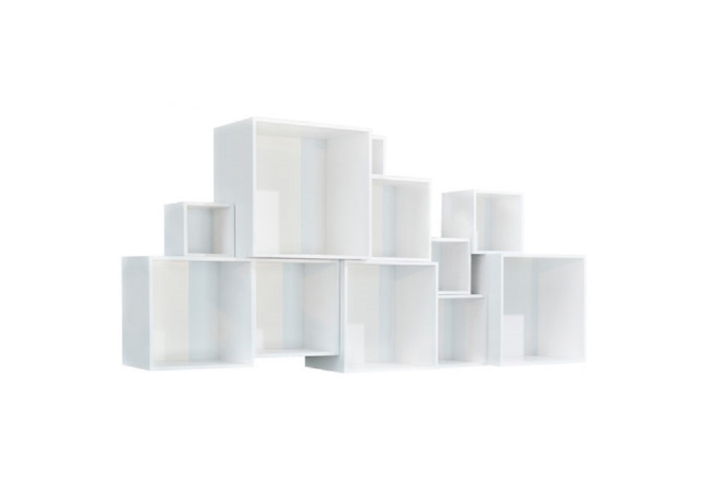 Babushka Boxes designed by OK Design is a modular bookcase. Its boxes fit perfectly into each other. One set is composed by 11 boxes that can be arranged in different ways to fulfill your storage needs. Available in 3 different finishes: grey, grey/lacquer MDF and white.
