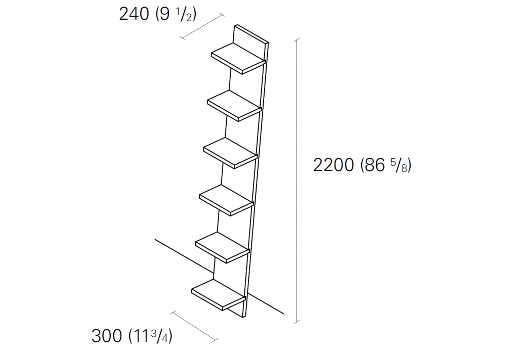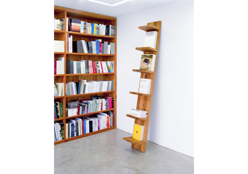 SH01 Mate designed by Florian Asche for E15 is a bookshelf realized in solid wood. Mate is leant against the wall and the shelves are fastened to the backboard by means of a classic dovetail joint. Mate reflect an overall modern solution for shelving. Available in two finishes.