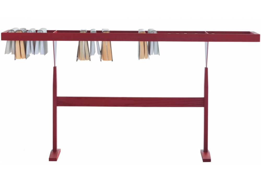 Booken conçu par Raw Edges pour Lema est une une bibliothèque composée d'éléments en frêne laqué.