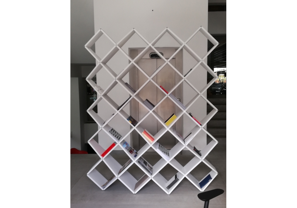Exclusivement pour MILIA, S-J A. Liotta dessine et MYOP produit sept configurations différentes X.me d'origine: sept bibliothèques, sept modules conteneurs. X.me est fait de panneaux en PVC ou MDF expansé avec des couches internes de placage de bois, coupé avec des machines CNC et assemblés avec des connecteurs en aluminium extrudé. Les décennies d'expérience des entreprises d'artisanat sicilien est multiplié par l'action des créateurs Salvator-John A. Liotta, qui se manifeste dans ce projet sa philosophie de faire "beaucoup avec très peu."