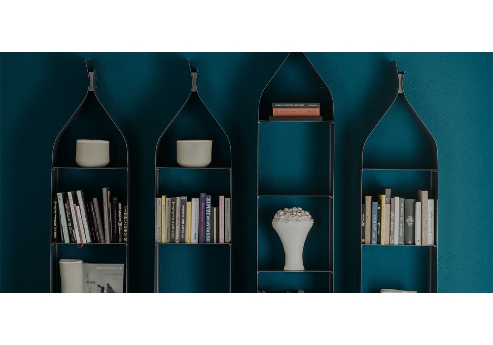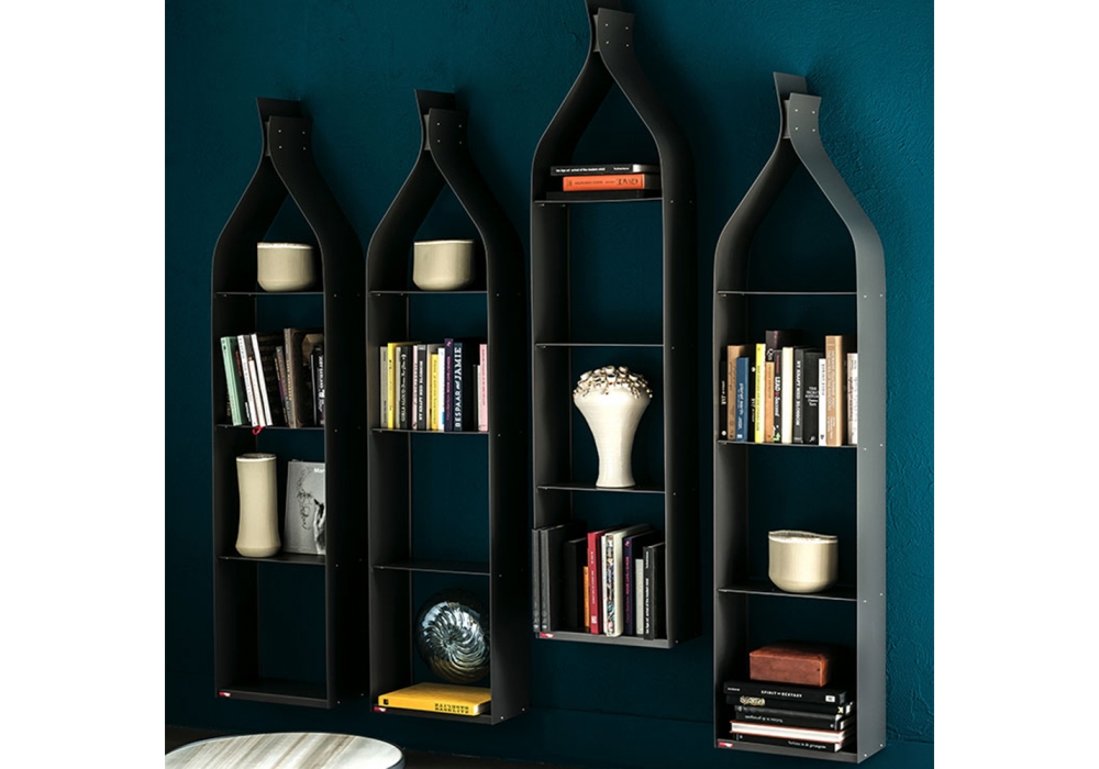 Swing conçue par Pierpaolo Zanchin pour Cattelan Italia est une bibliothèque réalisée en acier gaufré en finitions blanc ou graphite.