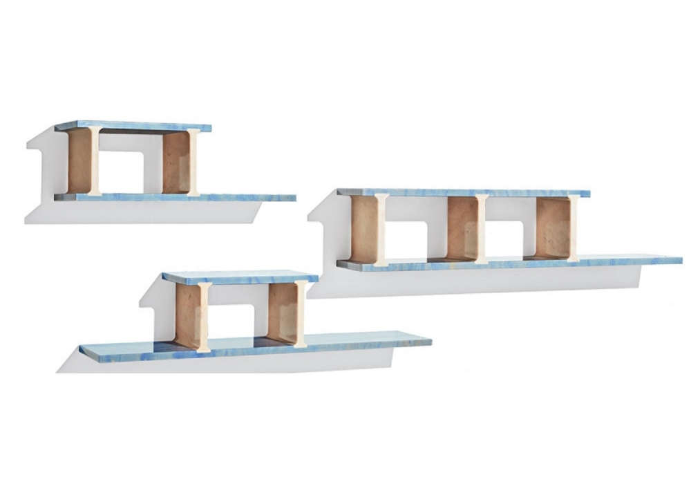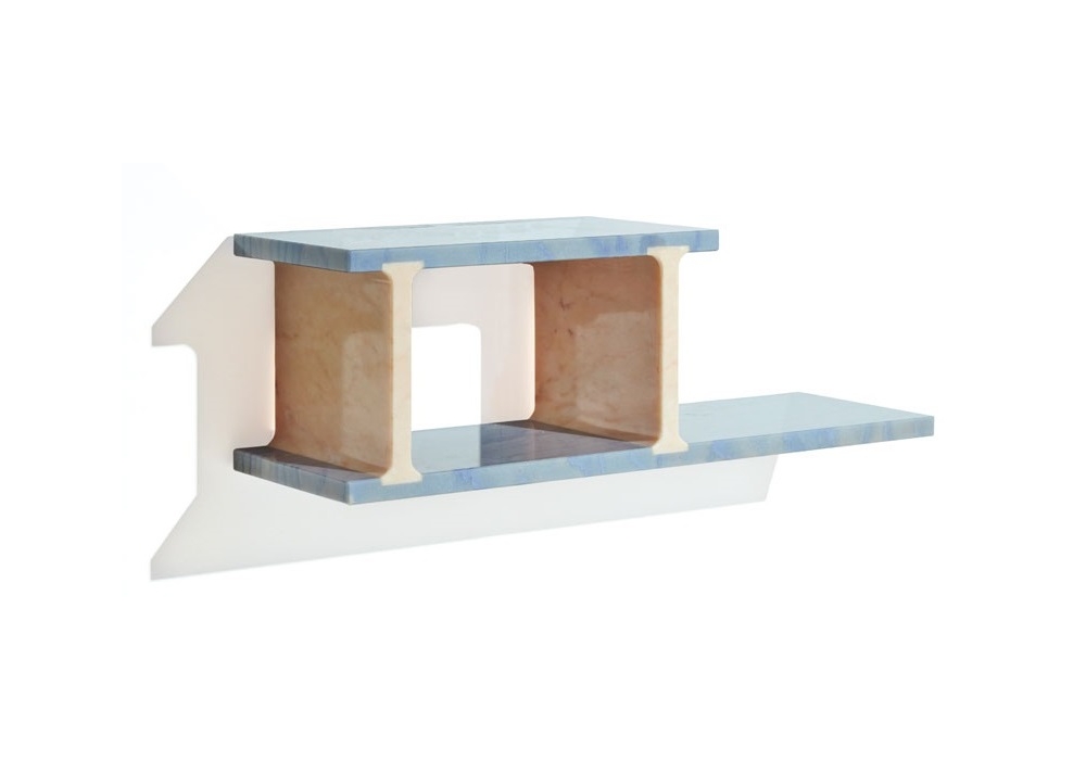 Rabbet conçue par Patricia Urquiola pour Budri est une étagère réalisée en marbre Azul Macaubas et Rosa Portogallo. Disponible aussi en 3 modèles.