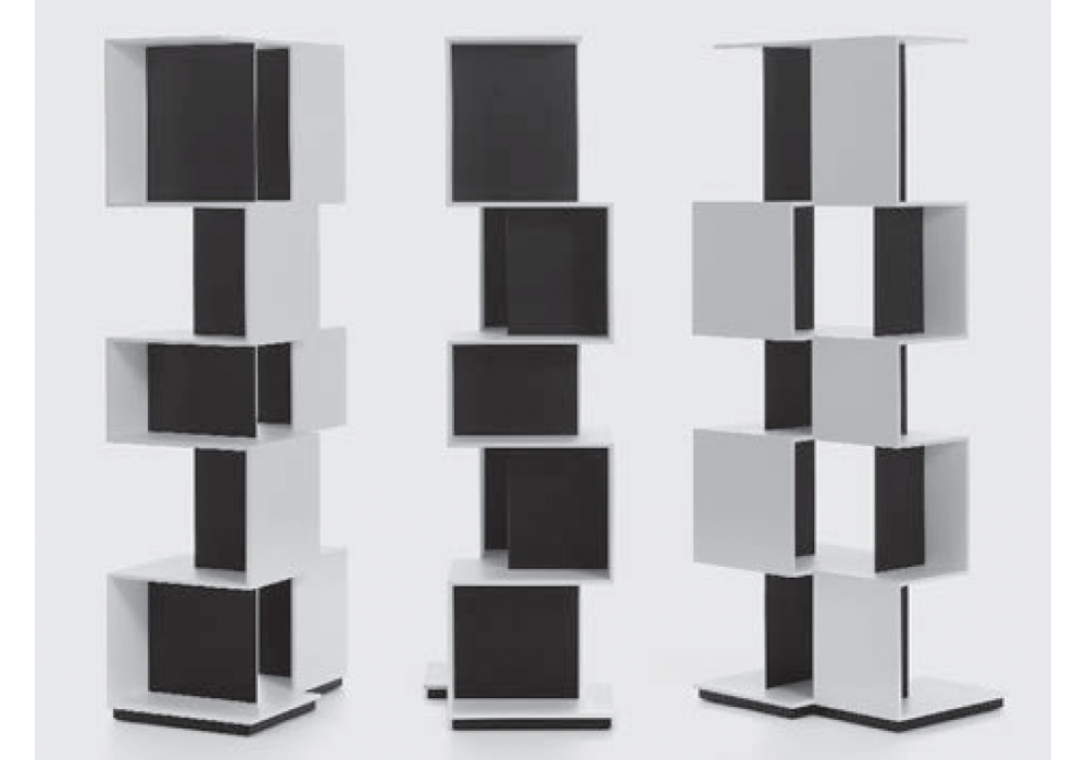 Qubit conçue par Victor Vasilev pour MDF Italia est une bibliothèque composée d'un seul élément modulaire qui permet la réalisation de différentes configurations. Disponible dans les combinaisons de couleurs prédéfinies suivantes: structure laquée blanc microformé avec séparateurs verticaux en frêne à pores ouverts teinté noir ou structure laquée gris plomb micro-gaufré avec séparateurs verticaux laquées or.