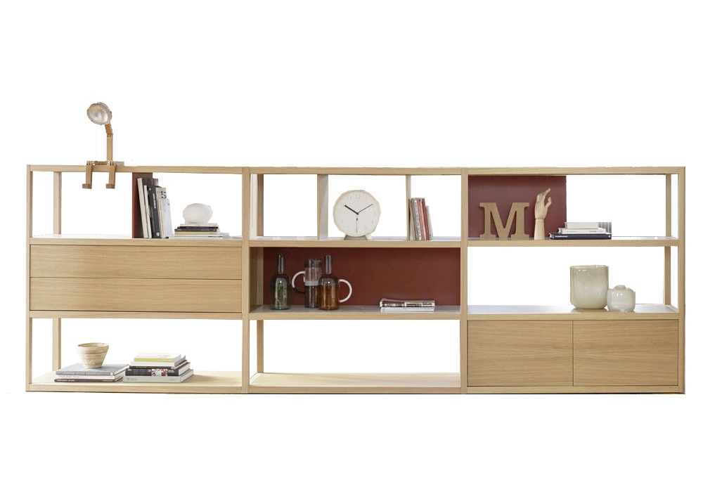 Kai conçu par Iratzoki Lizaso pour Treku est une bibliothèque modulaire en bois disponible en différentes finitions en bois, avec des panneaux dorsaux en bois laqué dans les finitions disponibles et des profils arrondis.
