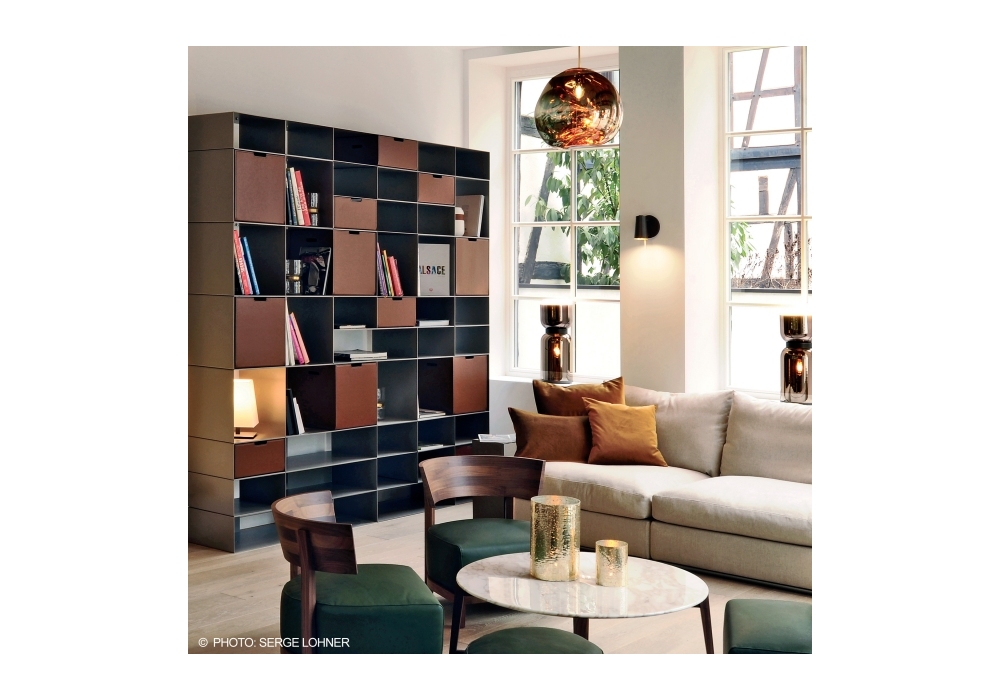Infinity, conçu par Antonio Citterio pour Flexform, est une bibliothèque. Structure métallique en différentes finitions. Conteneurs en cuir de différentes finitions. Contactez notre personnel pour composer votre bibliothèque personnalisée.
