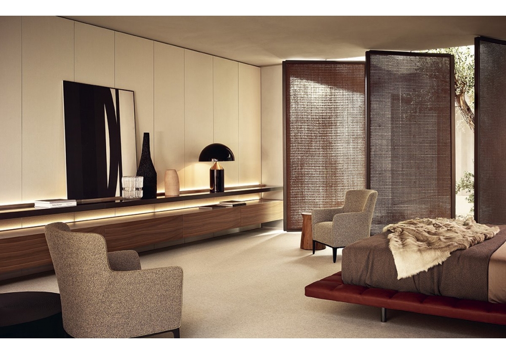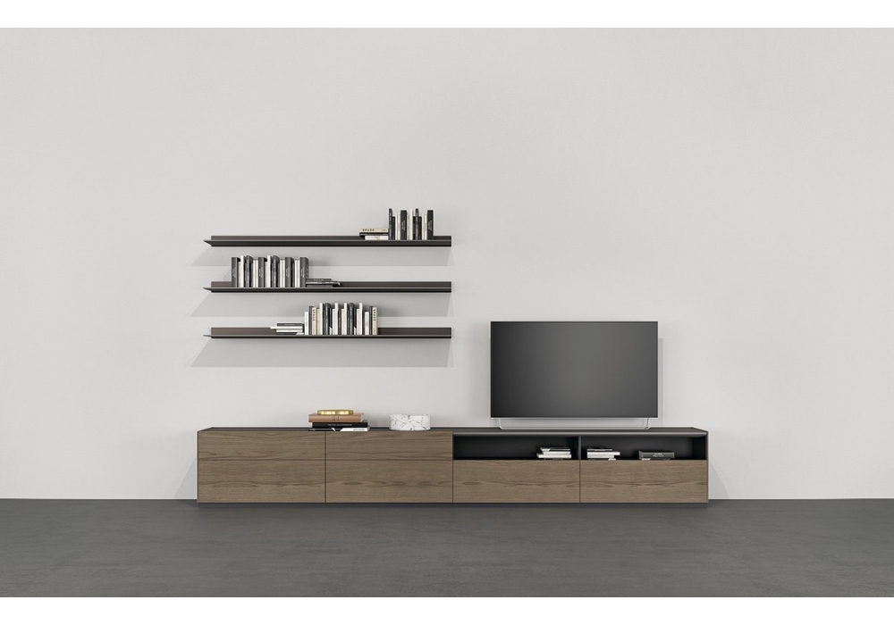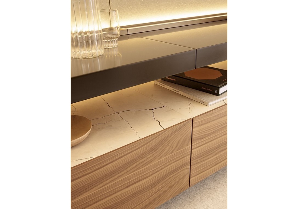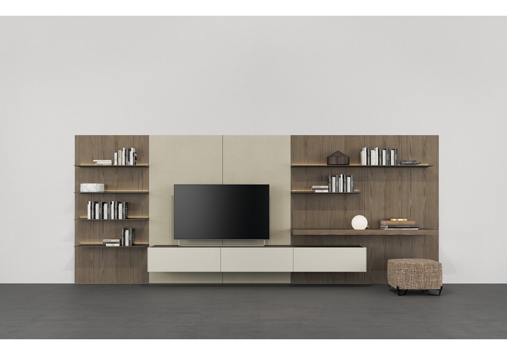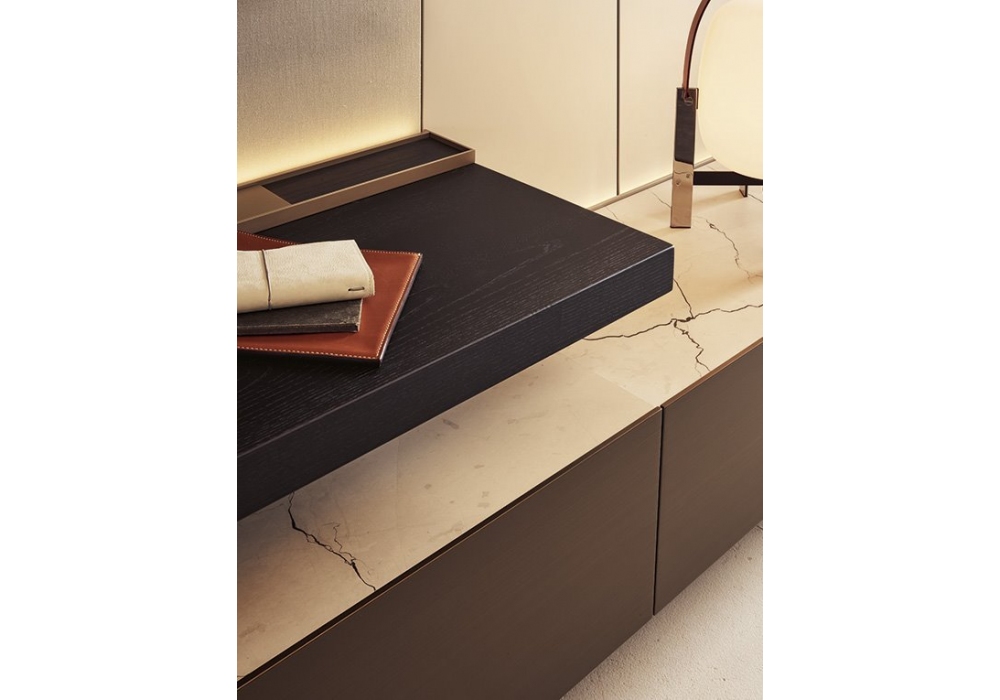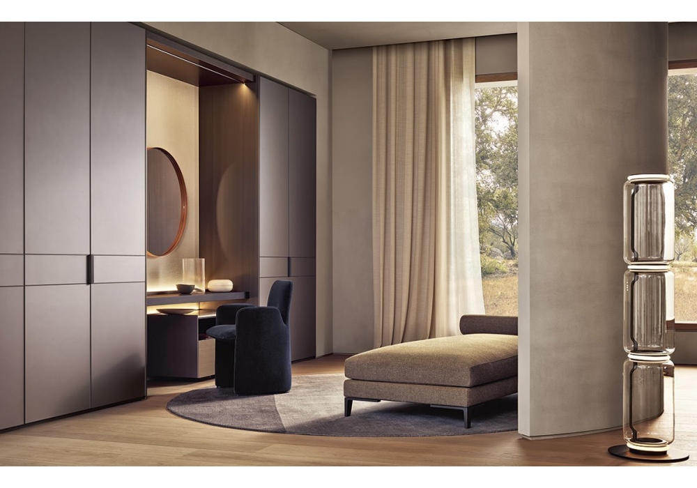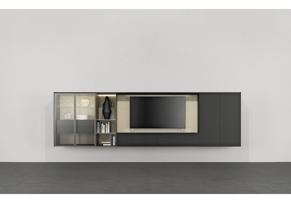 Code signé par R&D Poliform est un système modulaire qui permet différentes possibilités de configuration. Il se compose de plusieurs éléments: boiseries, rangements suspendus, étagères, compartiments ouverts, vitrines, tiroirs et portes battantes ou abattantes. Certains peuvent être utilisés comme éléments propres ou en association avec des armoires ou des garde-robes.