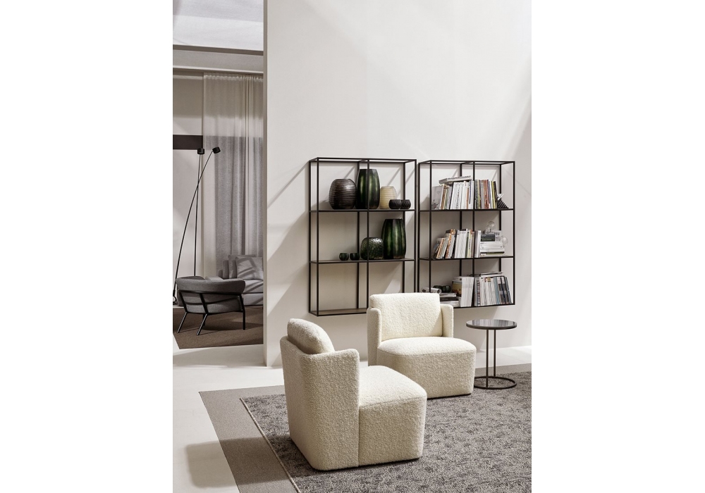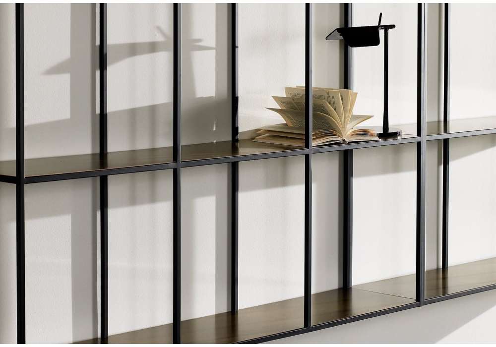 Hardy conçue par Andrea Parisio pour Meridiani est une bibliothèque murale avec structure et étagères en métal. Disponible en plusieurs dimensions et finitions. Complet avec supports pour fixation au mur.