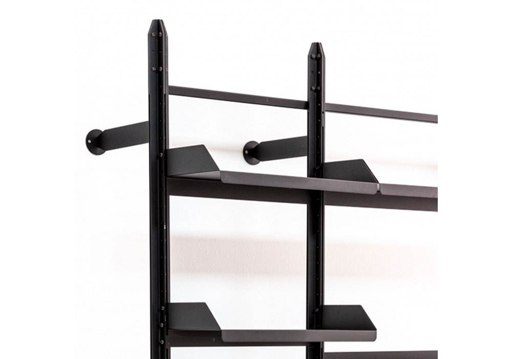 Mecano conçu par Diesel Creative Team pour Diesel avec Moroso avec Moroso est une bibliothèque modulaire avec structure en acier verni. La bibliothèque est composée de montants et d'étagères perforés de deux tailles (60x29 cm et 90x29 cm). Possibilité de fixation au mur ou au plafond.