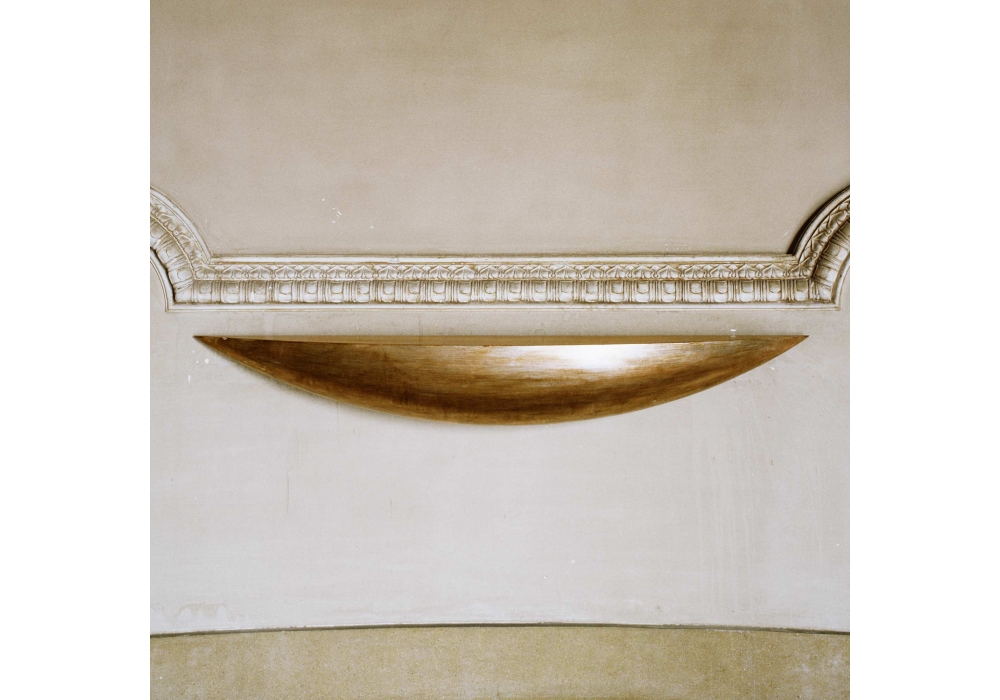 Ciotola conçue par Marco Bagnoli pour Memphis Milano est une étagère en bois recouvert de feuille d'argent ou d'or.