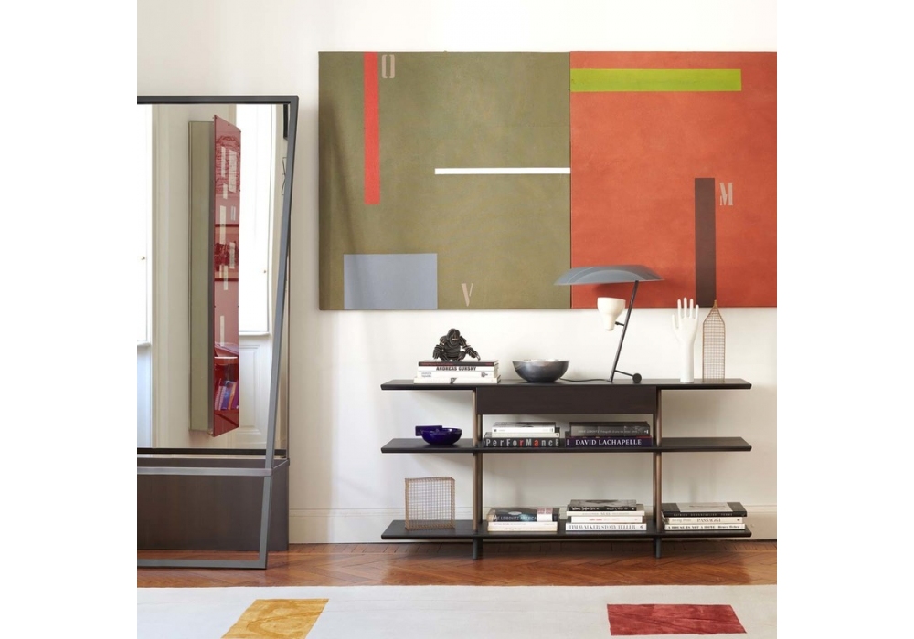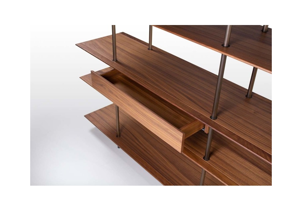 Arial conçue par Gabriele & Oscar Buratti pour Potocco est une bibliothèque autoportante réalisée avec une structure en métal et des étagères en bois de frêne ou noyer Canaletto. Disponible en différentes finitions et dimensions. Tiroir en option.