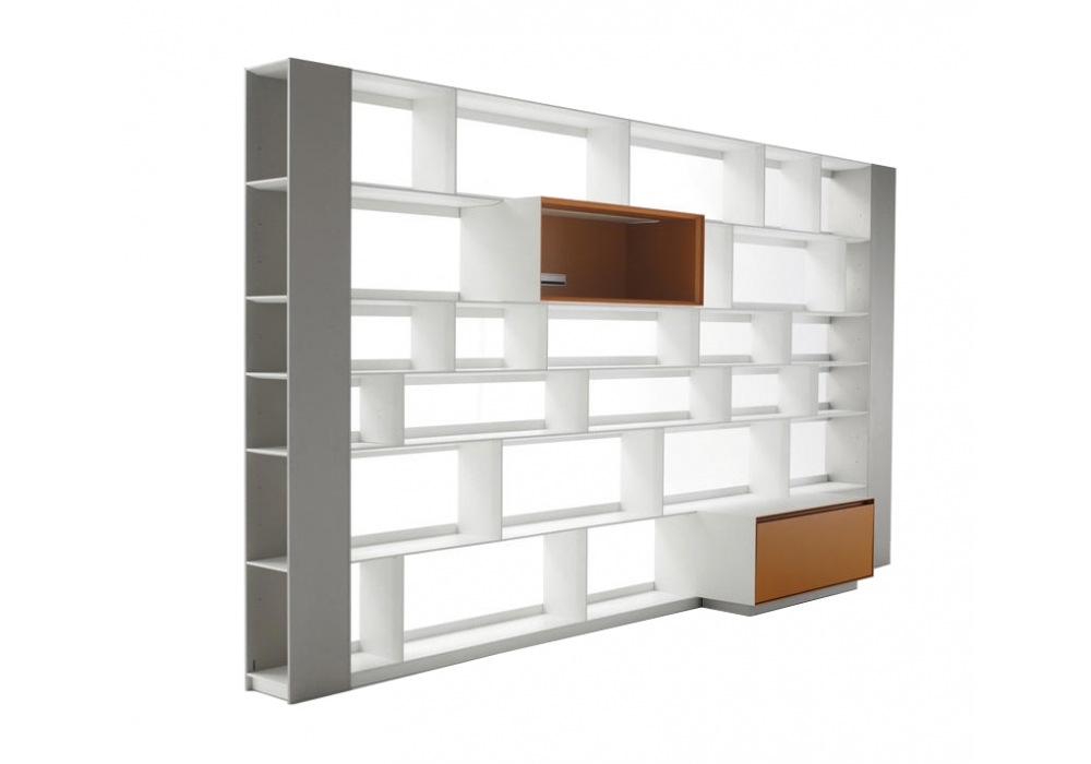 Flat.C conçu par Antonio Citterio pour B&B Italia est un système mural créé pour contenir des livres, accueillir de manière adéquate la télévision et tous les appareils hi-fi dans un faible encombrement. La profondeur de seulement 25 cm, l'épaisseur extrêmement réduite des plateaux et des côtés, l'absence totale de joints apparents sont autant de particularités d'un projet d'ameublement polyvalent qui ne s'impose pas à l'environnement.