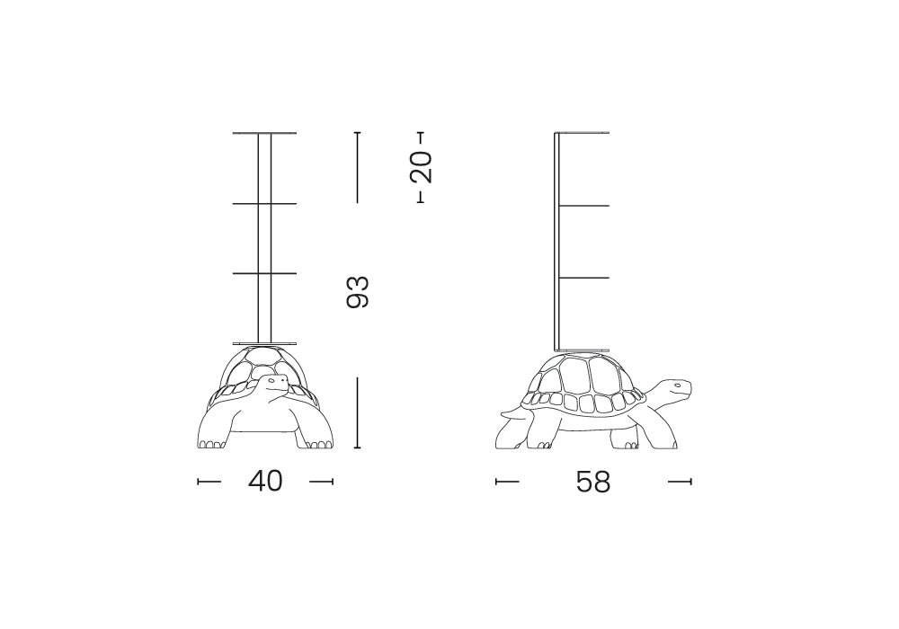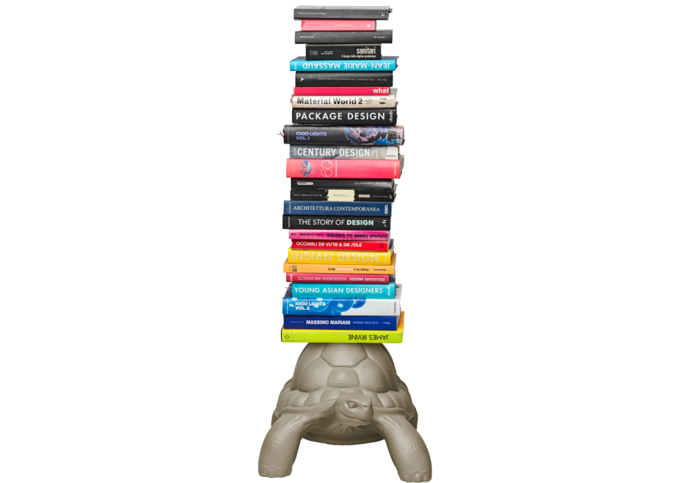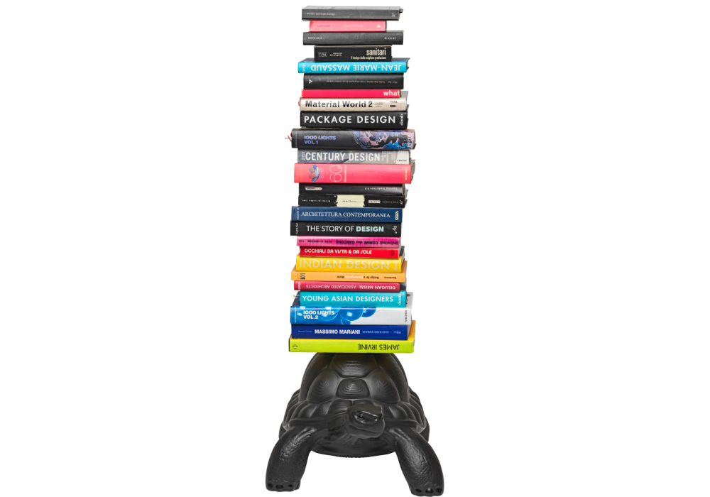 Turtle Carry conçue par Marcantonio pour Qeeboo est une bibliothèque en polyéthylène et métal disponible en différentes finitions.