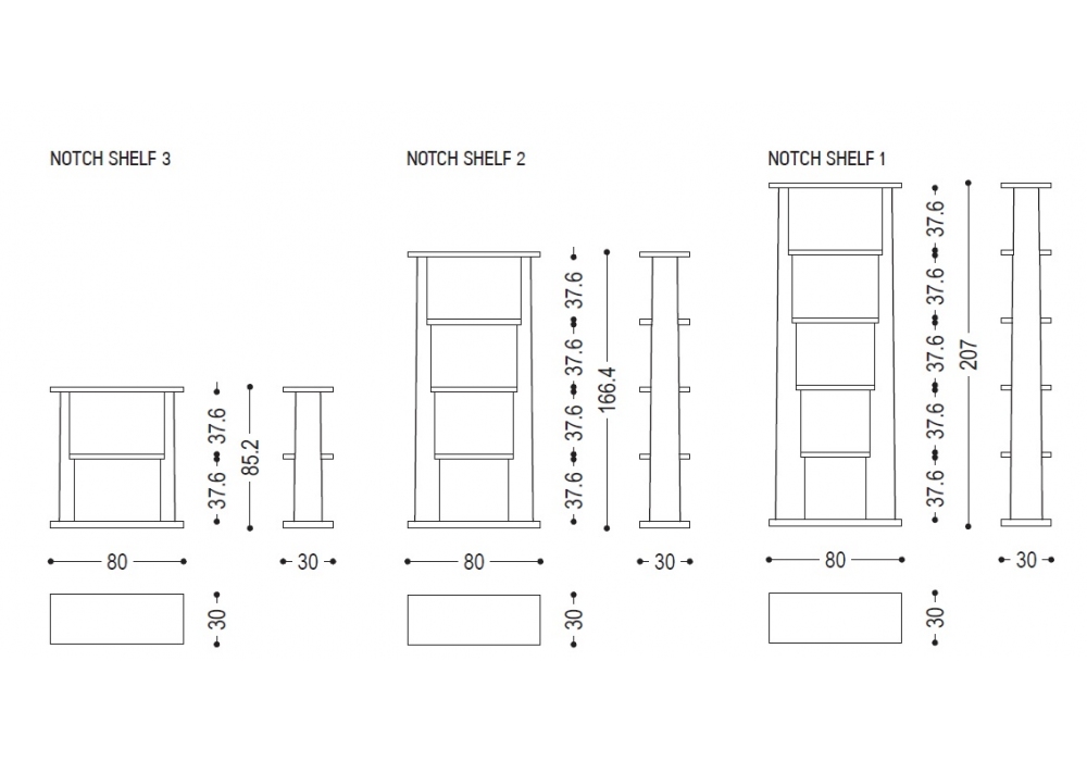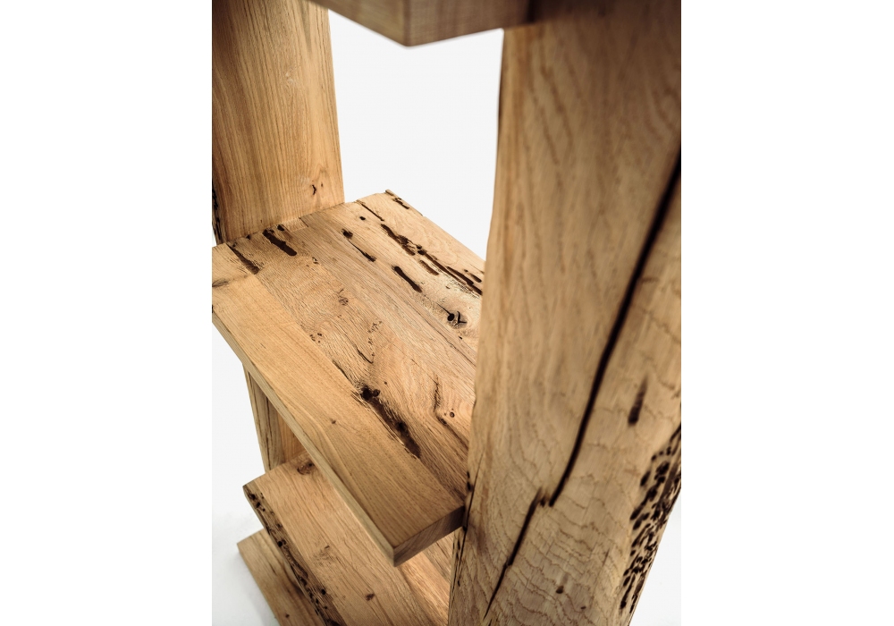 Notch Shelf conçue par Neri & Hu pour Riva 1920 est une bibliothèque entièrement réalisée en Briccola, composée de deux poteaux profilés qui supportent une série d'étagères aux bords carrés à travers des joints de pression. Disponible en trois hauteurs différentes.