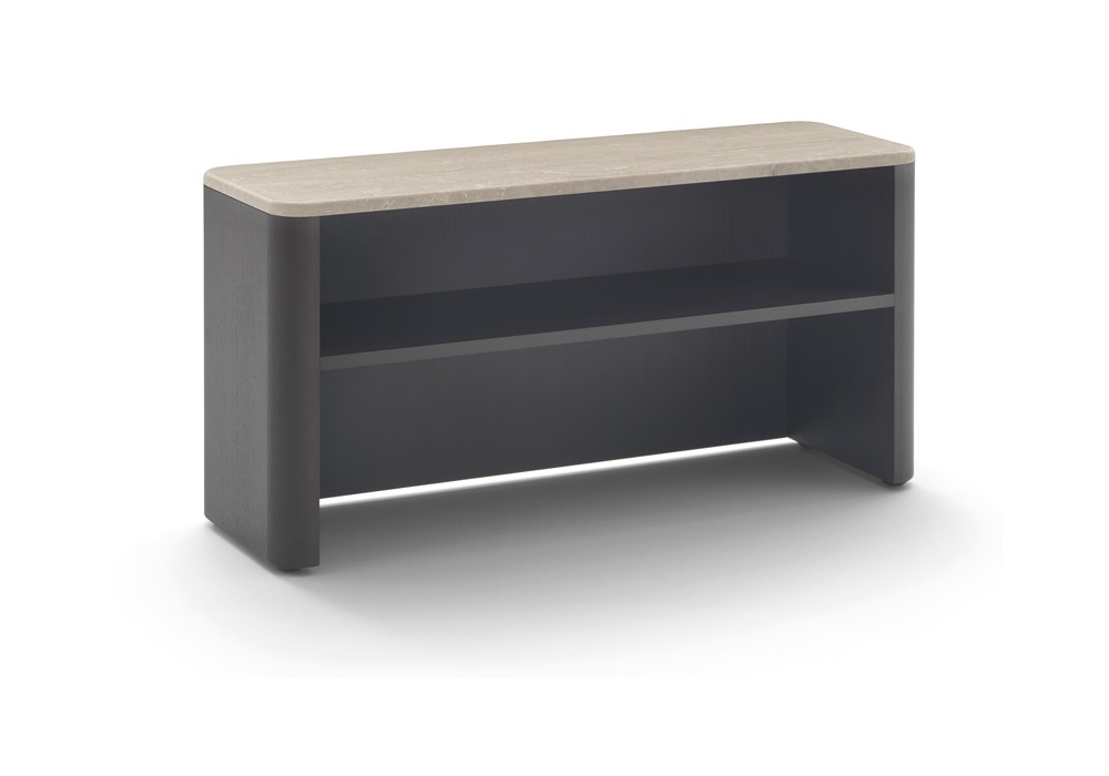 Tokio conçu par Claesson Koivisto Rune pour Arflex est un module avec étagère réalisé avec une structure en frêne teinté chocolat et un plateau en marbre Travertino ou en frêne teinté chocolat.