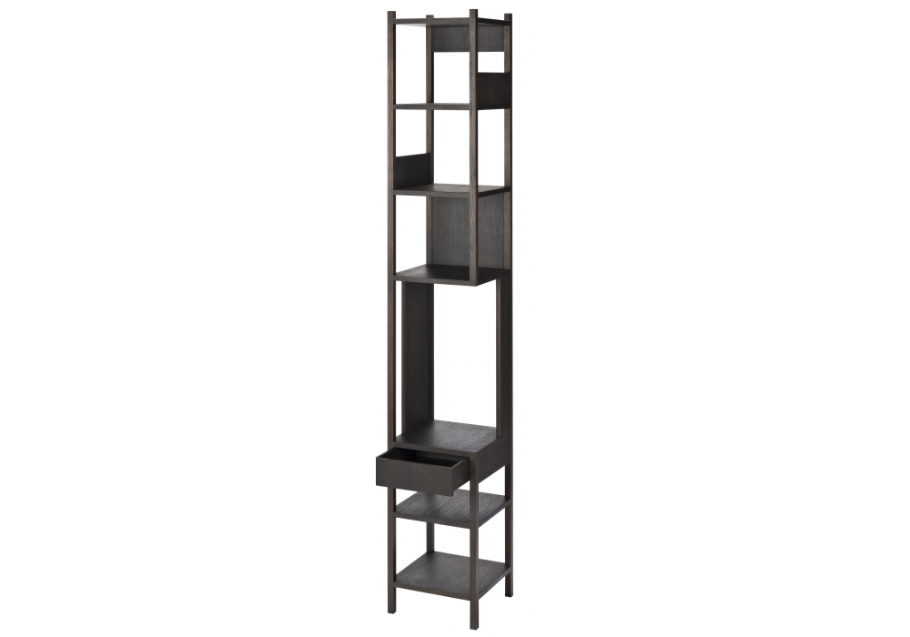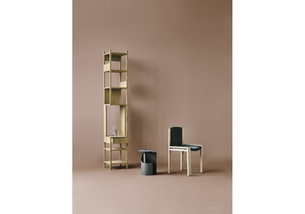 Lungangolo conçue par Achille Castiglioni pour Karakter est une étagère en chêne massif plaqué et traité. Disponible en différentes finitions et modèles.