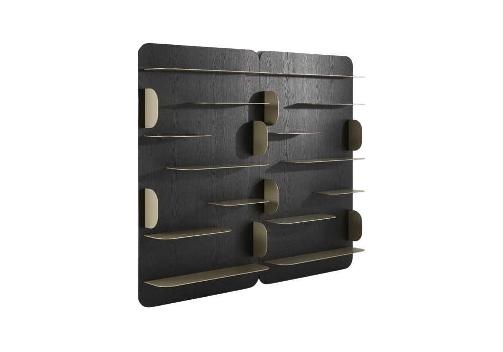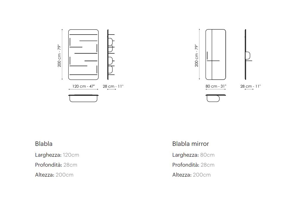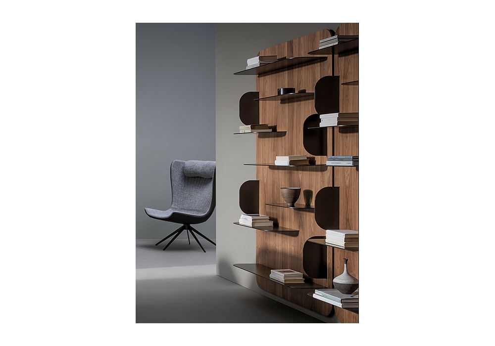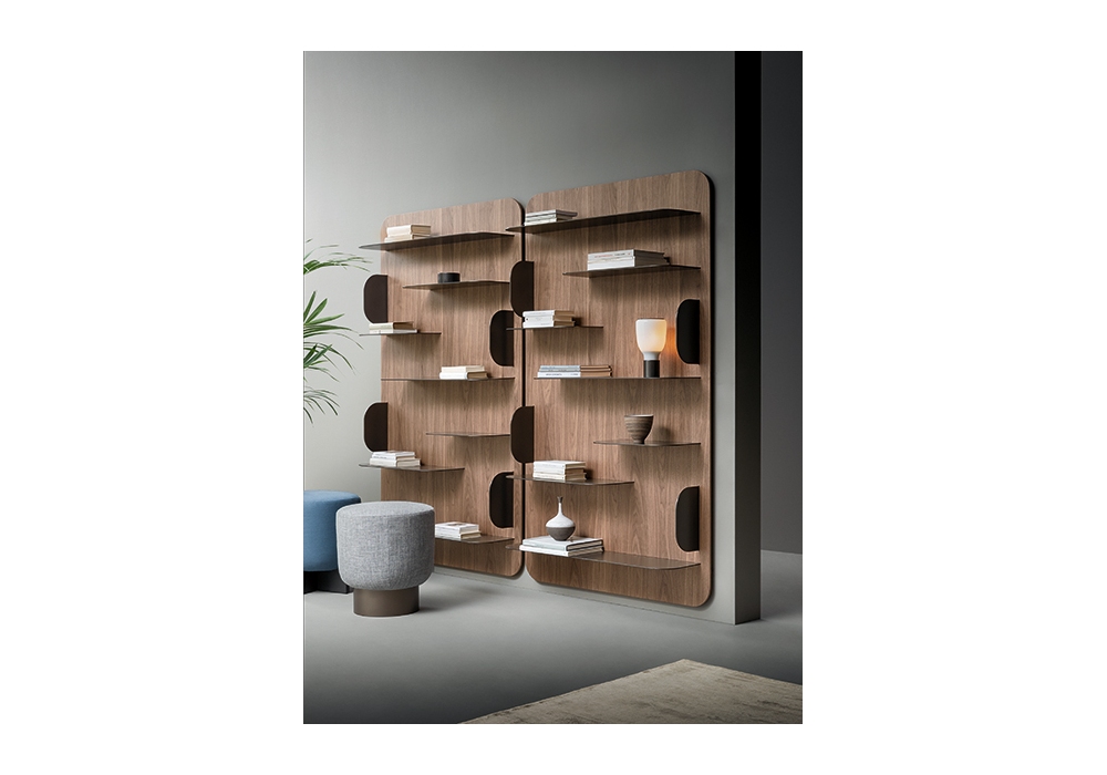 Blabla conçue par Marconato & Zappa pour Bonaldo est une bibliothèque disponible en deux modèles, avec ou sans miroir, avec structure en bois plaqué et étagères en métal peint, en différentes finitions. Les deux modèles peuvent également être combinés pour obtenir une composition élégante.