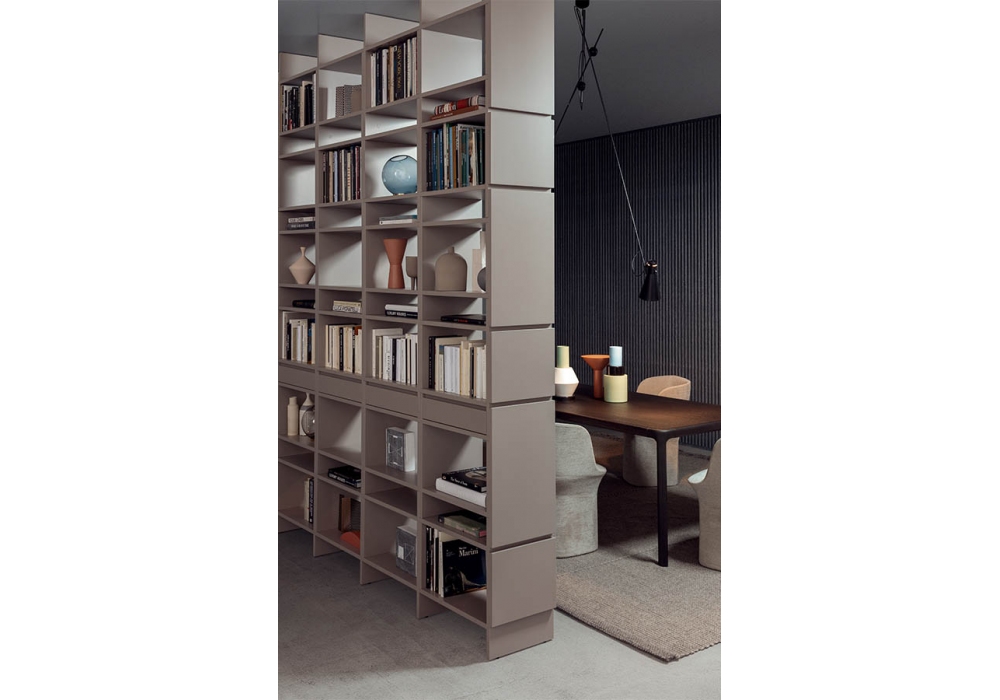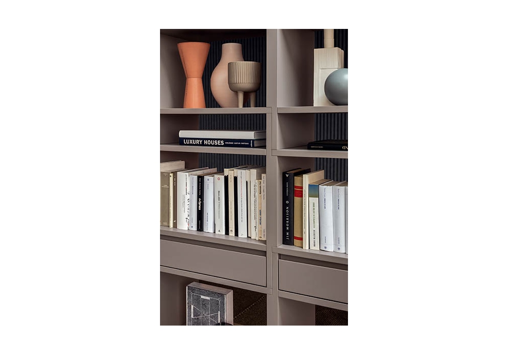 Unless conçue par Ferruccio Laviani pour Pianca est une bibliothèque modulaire réalisée avec des panneaux de particules recouverts de matériau sinétique laqué mat ou de placage de bois dans les finitions Essenza. Possibilité supplémentaire d'accueillir de petits tiroirs.