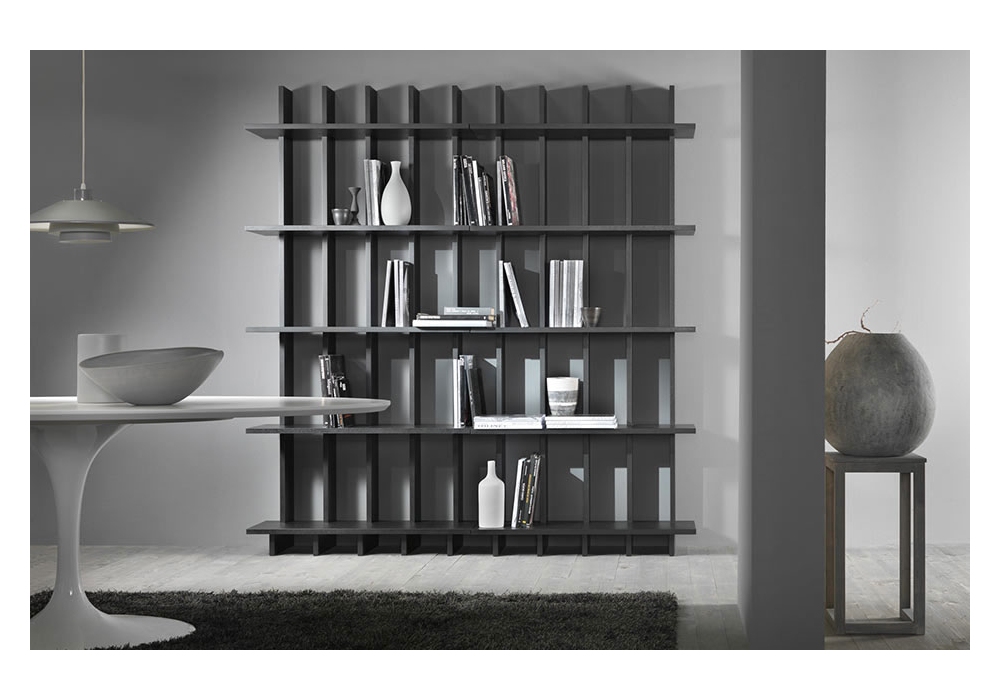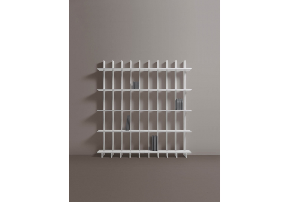 Babele conçue par Fabio Bortolani pour My Home Collection est une bibliothèque en MDF laqué avec de grandes étagères en saillie. Babele est disponible en différentes finitions.
