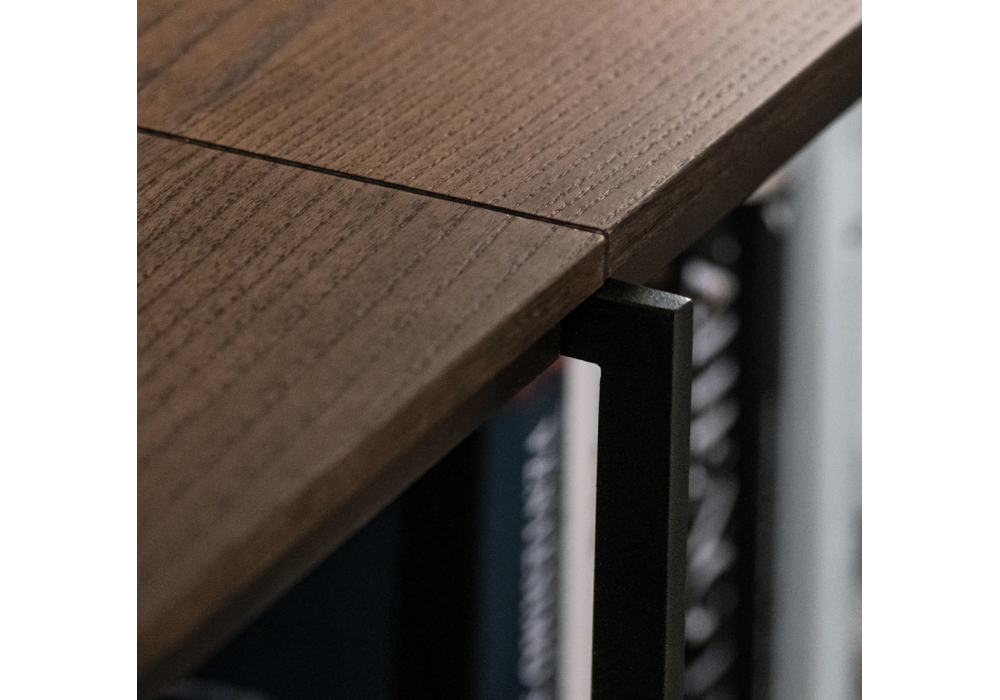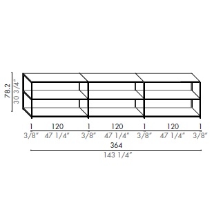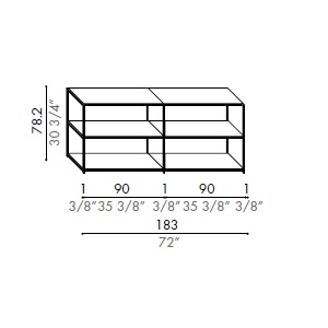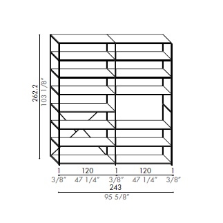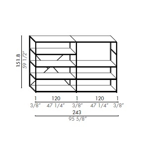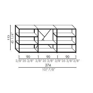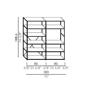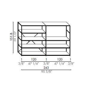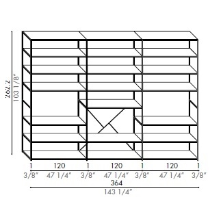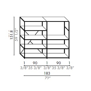 Image conçue par Roberto Gobbo pour Désirée est une bibliothèque modulaire avec structure en métal avec revêtement en poudre époxy en relief. Les étagères sont en métal peint, en MDF laqué ou en frêne plaqué.