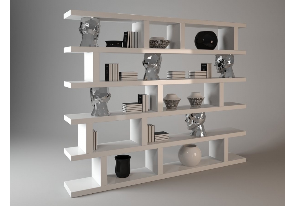 Forma Mentis conçue par Simone Micheli pour Visionnaire est une bibliothèque structurée en bois léché avec des sculptures en forme de tête en céramique peinte en or. Forma Mentis est disponible en différents modèles et finitions laquées.