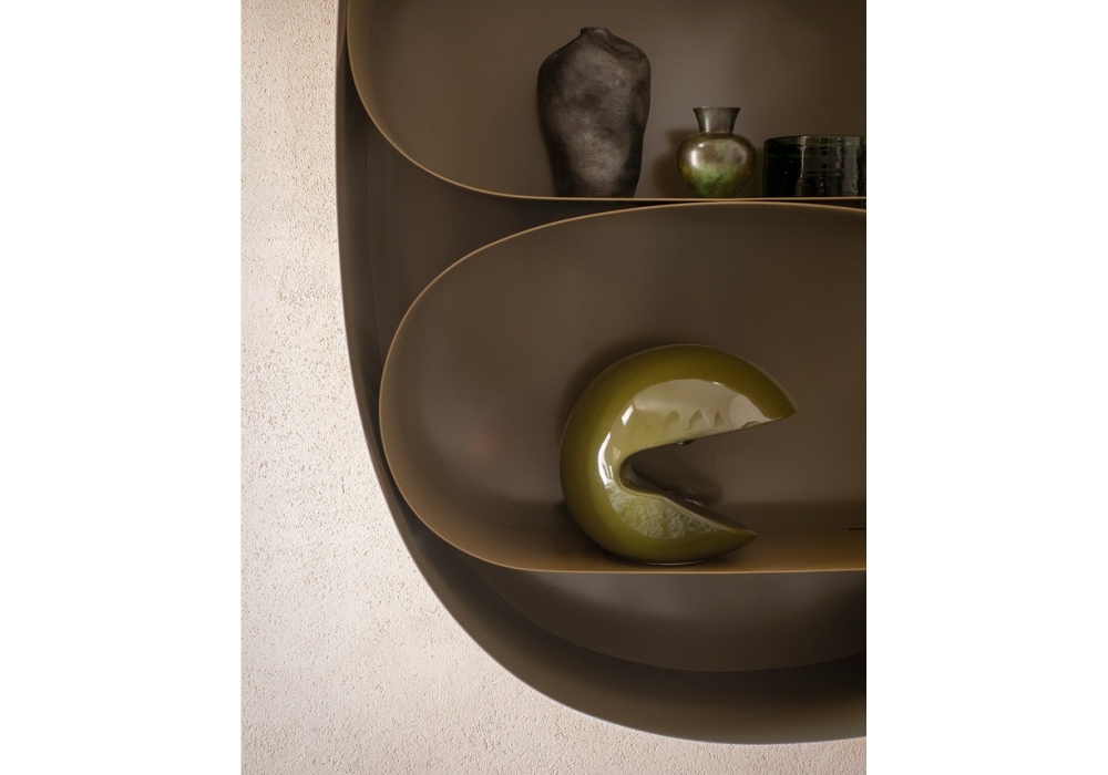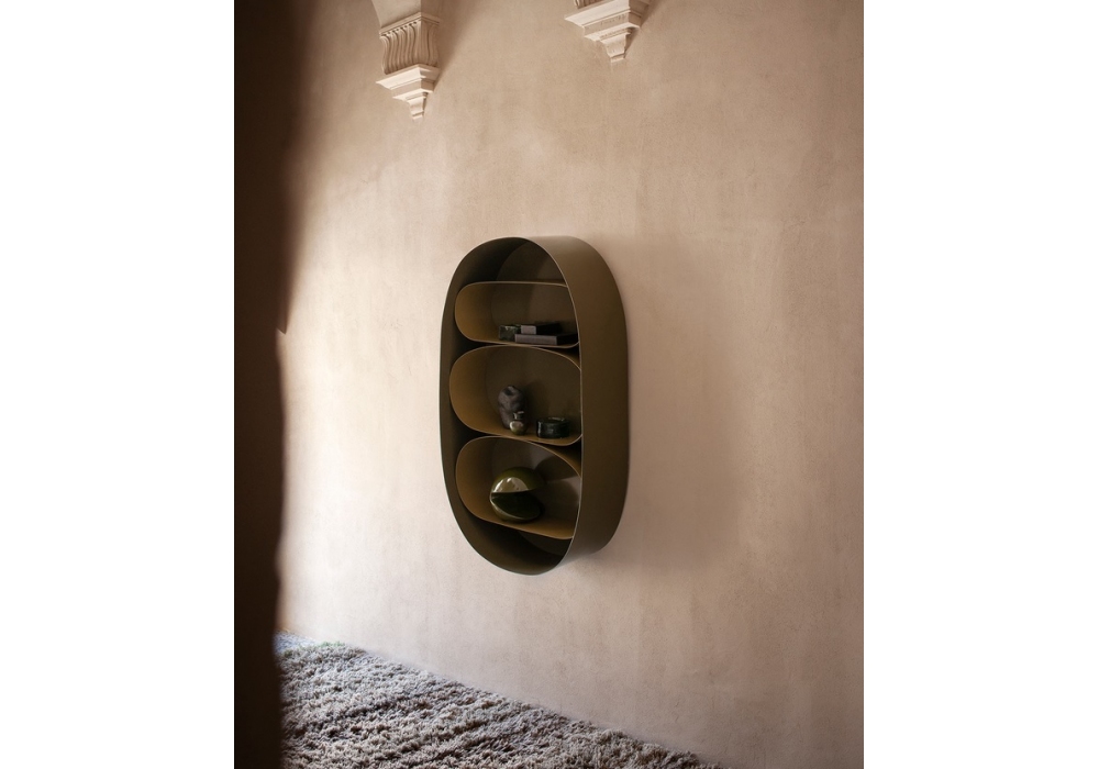 Astral conçue par Faye Toogood pour Tacchini est une bibliothèque réalisée en tôle métallique thermolaquée avec une finition interne mate et une finition externe brillante. Disponible en différentes finitions.