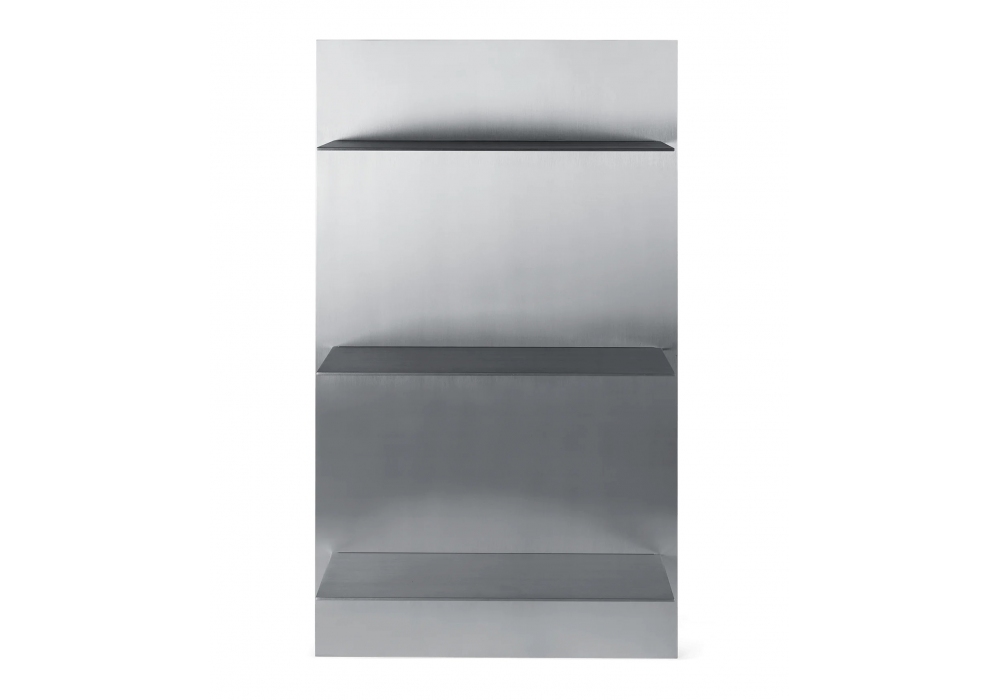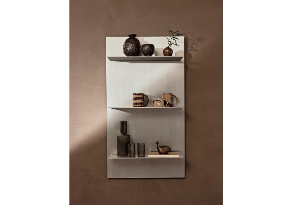 Lager Wall Shelf conçu par Ferm Living est un système d'étagères réalisé en aluminium, qui fait référence à l'esthétique industrielle et brutaliste.