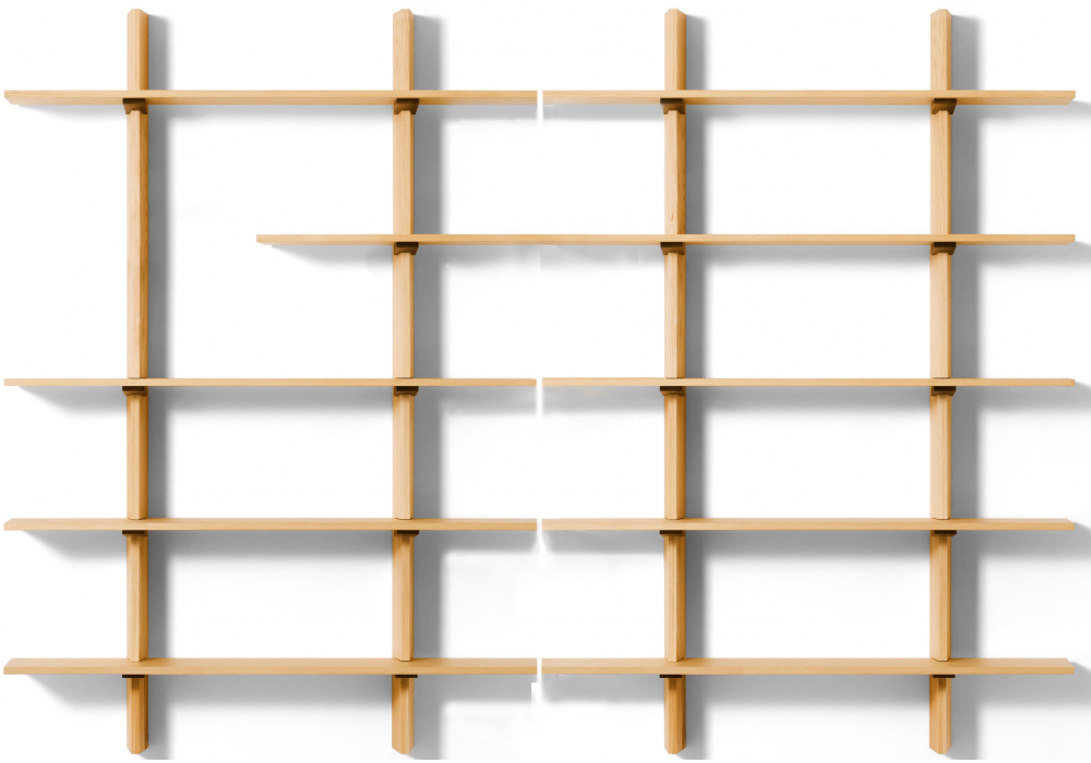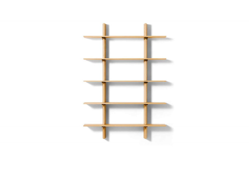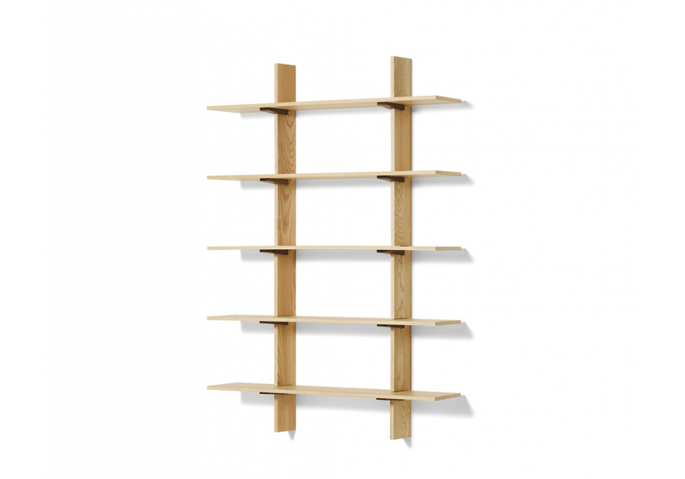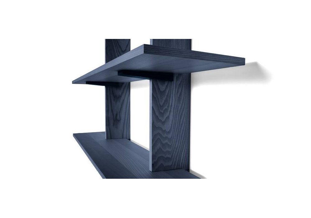 FF.Spine conçue par Formafantasma pour Cassina est une bibliothèque suspendue avec fixation murale en frêne massif ou en noyer canaletto.