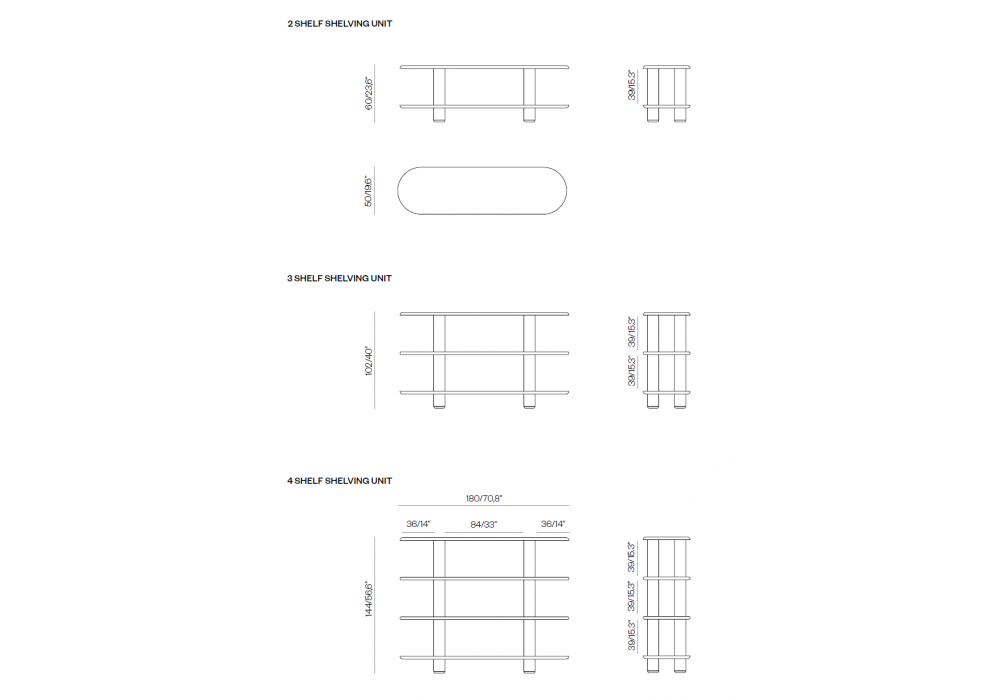 | Dimensions | 180 x 50 x H 60 cm; 180 x 50 x H 102 cm; 180 x 50 x H 144 cm. |