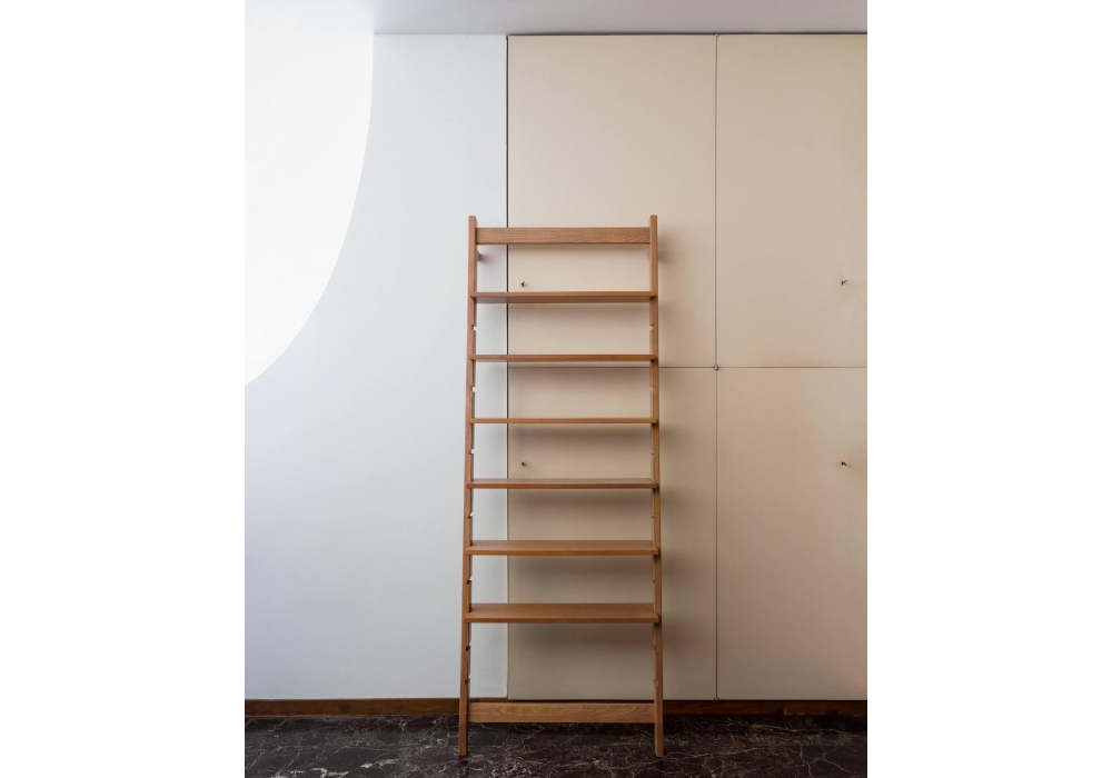 Moma conçue par Vico Magistretti pour Campeggi est une bibliothèque en hêtre évaporé peint transparent. Quincaillerie en métal peint en noir.