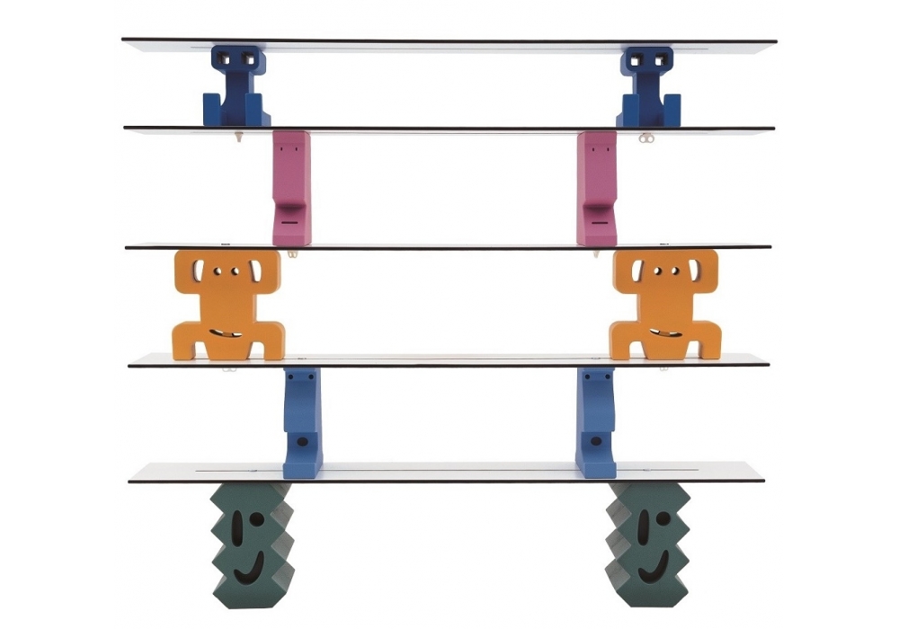 Ladrillos conçue par Javier Mariscal pour Magis Me Too est une bibliothèque modulaire. Briques en polyéthylène avec vis papillon et tige de fixation en tige d'acier galvanisé. Plateaux HPL. Base disponible en différents modules.