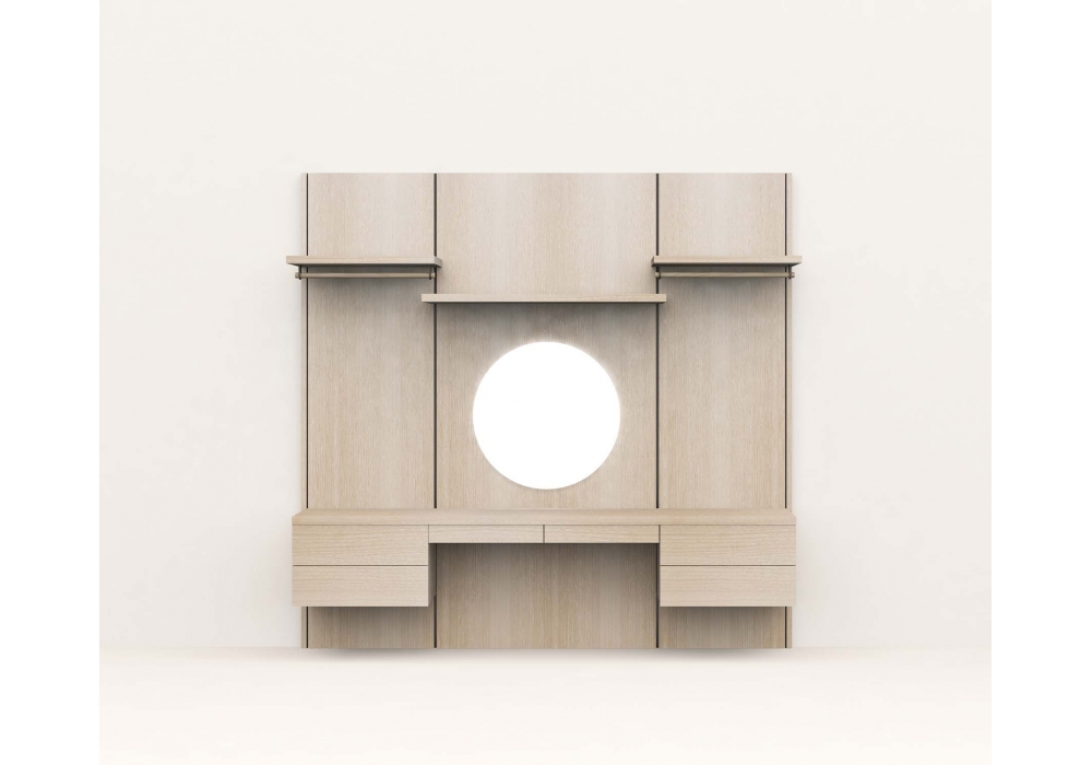 Modula Night conçu par Authentic Design pour Riva 1920 est un système de nuit modulaire composé de panneaux de boiserie et peut être intégré avec des tiroirs, des étagères et des accessoires de cintres. Les panneaux de boiserie sont fabriqués en panneau latté plaqué et sont également disponibles en version avec finition Fresart verticale. Possibilité d'intégrer des bandes LED et des miroirs. Disponible en différentes finitions.