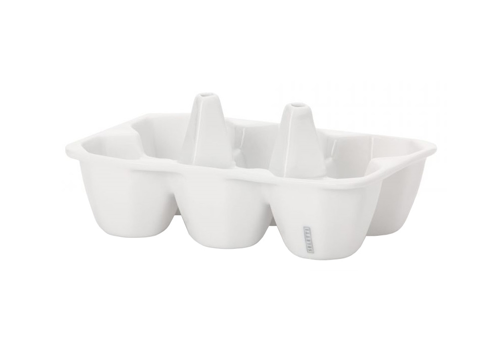 Egg and Salad Holder conçu par Selab & Alessandro Zambelli pour Seletti est un récipient de forme quadrangulaire aux coins arrondis entièrement réalisé en porcelaine blanche.
