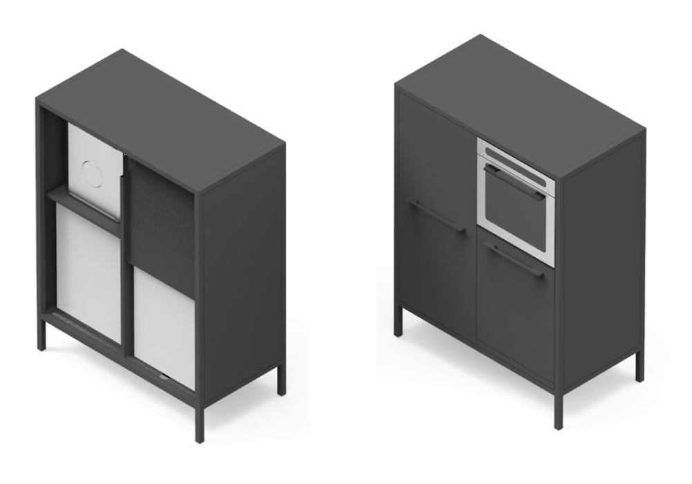 Frame Tall Units conçue par Salvatore Indriolo pour Fantin est une colonne de cuisine en métal disponible en deux hauteurs et en deux largeurs, elles peuvent être équipées de portes, tiroirs et électroménagers, sans limites de composition. Structure disponible en différentes finitions.