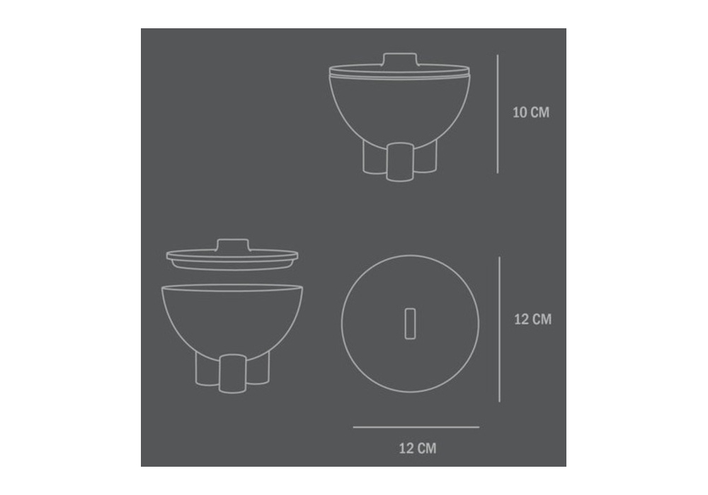 | Dimensions | • 8 x 8 x H 6,5 cm; • 12 x 12 x H 9,5 cm |