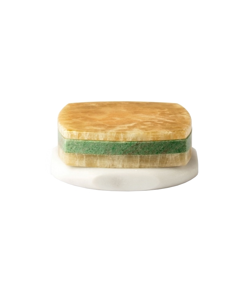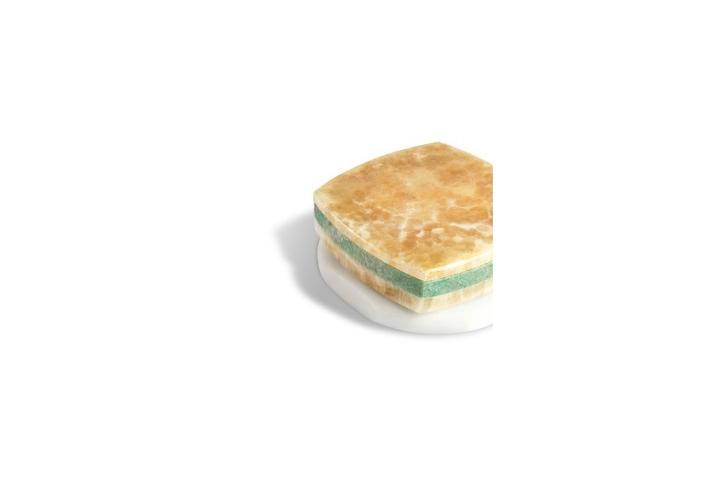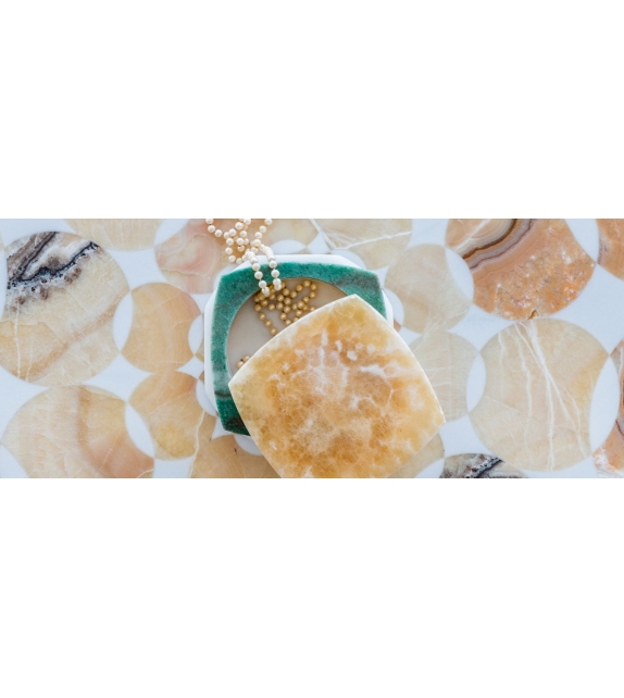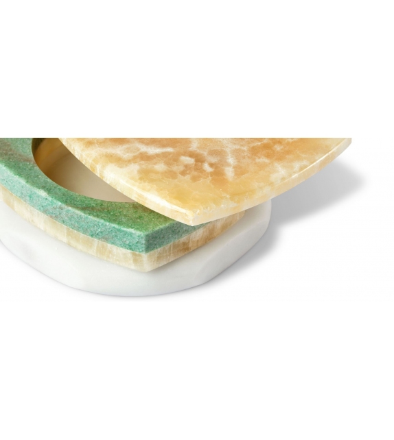 Grace conçue par Cristina Celestino pour Budri est une boîte à bijoux en Quartzite Vert, Onyx Miel et Blanc Statuaire. Le couvercle est en Honey Onyx.