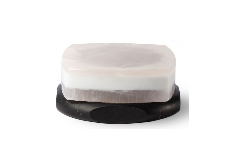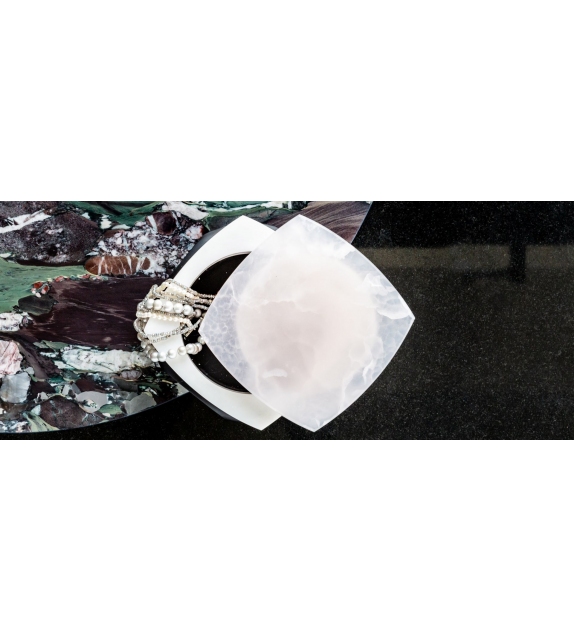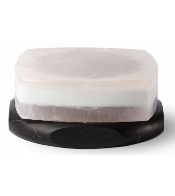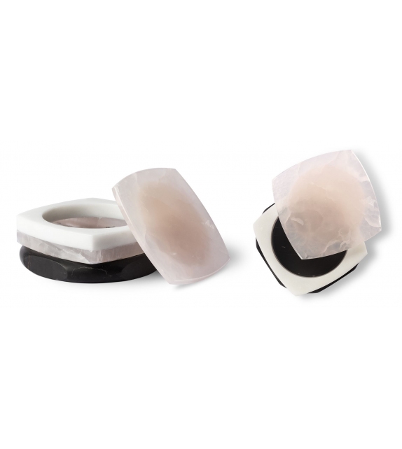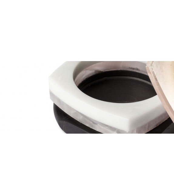 Coco conçu par Cristina Celestino pour Budri est une boîte à bijoux en marbre Nero Marquinia, Bianco Statuario et Onice Rosa. Le couvercle est en Onyx Rose.