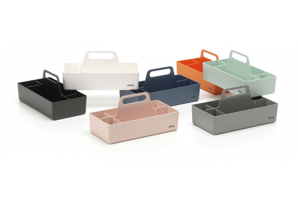 Toolbox RE conçu par Arik Levy pour Vitra est un porte-objets en plastique ABS recyclé, 100% recyclable. Disponible en différentes finitions.