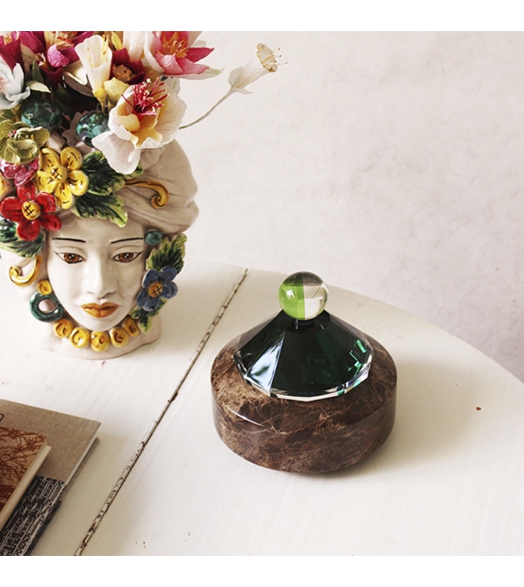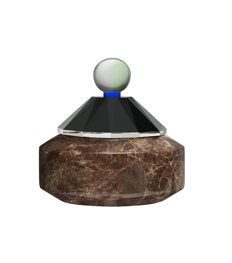 Apple conçue et produite par Reflections Copenhagen est une boîte à bijoux structurée par la combinaison de cristal artisanal et de marbre emperador.