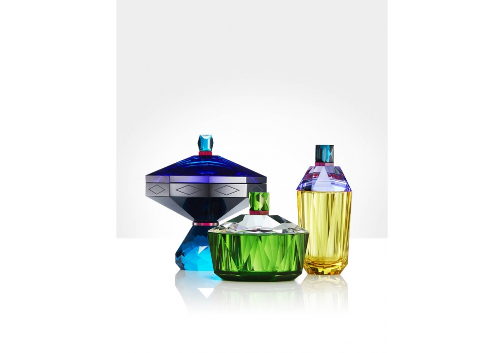 Long Island produit et signé par Reflections Copenhagen est une boîte à bijoux entièrement structurée en cristal artisanal jaune, violet, fuchsia et saphir.