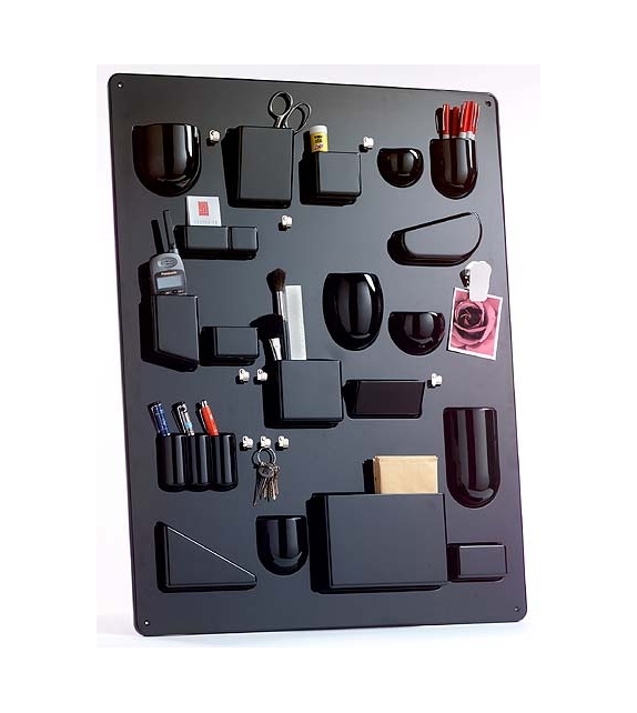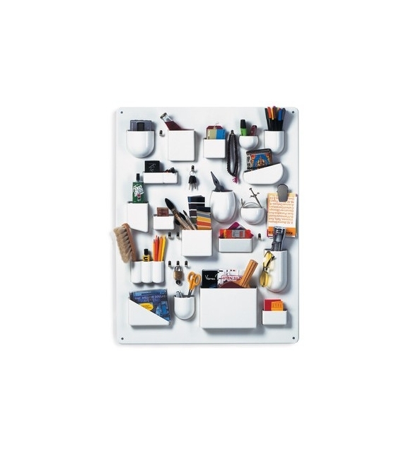 Uten.Silo RE conçu par Dorothee Becker pour Vitra est un stockage en plastique ABS recyclé et crochets en métal nickelé. Disponible en différentes finitions et 2 dimensions.