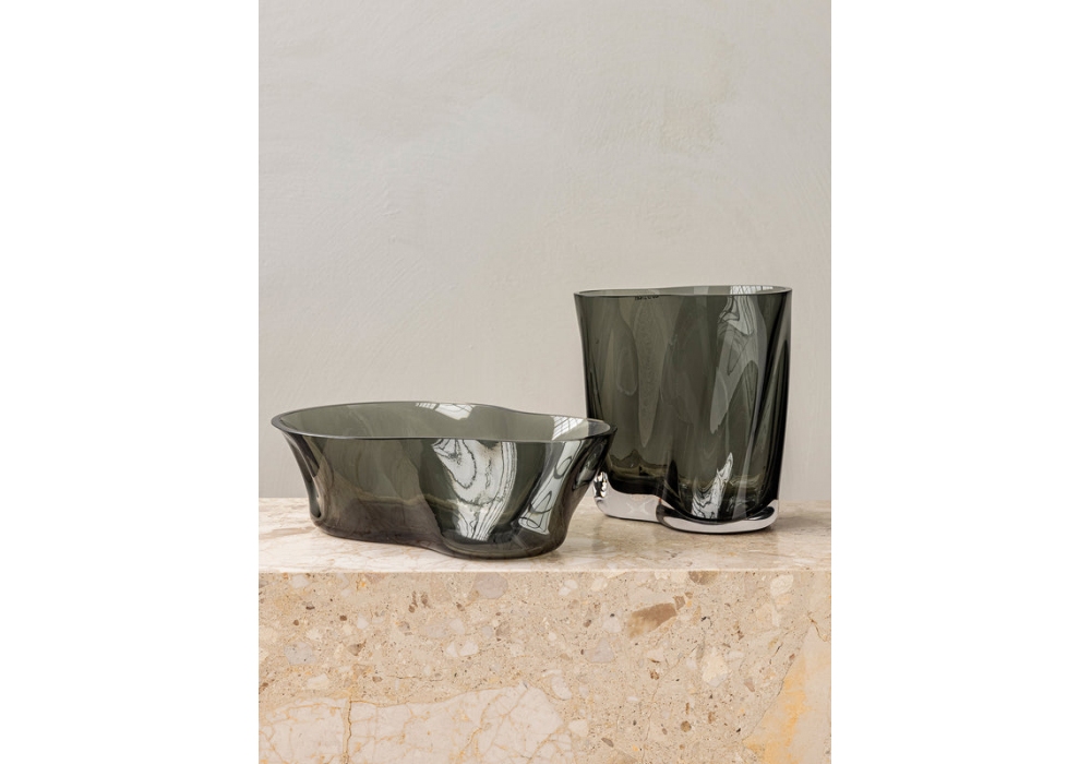 Aer conçu par Gabriel Tan pour Audo Copenhagen est un bol en verre soufflé à la bouche, disponible en finition fumée.