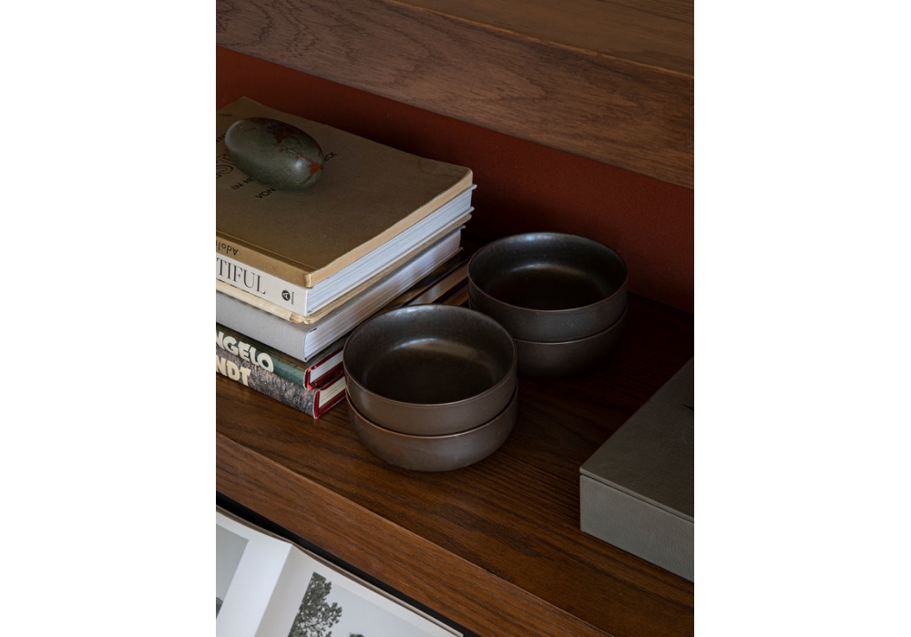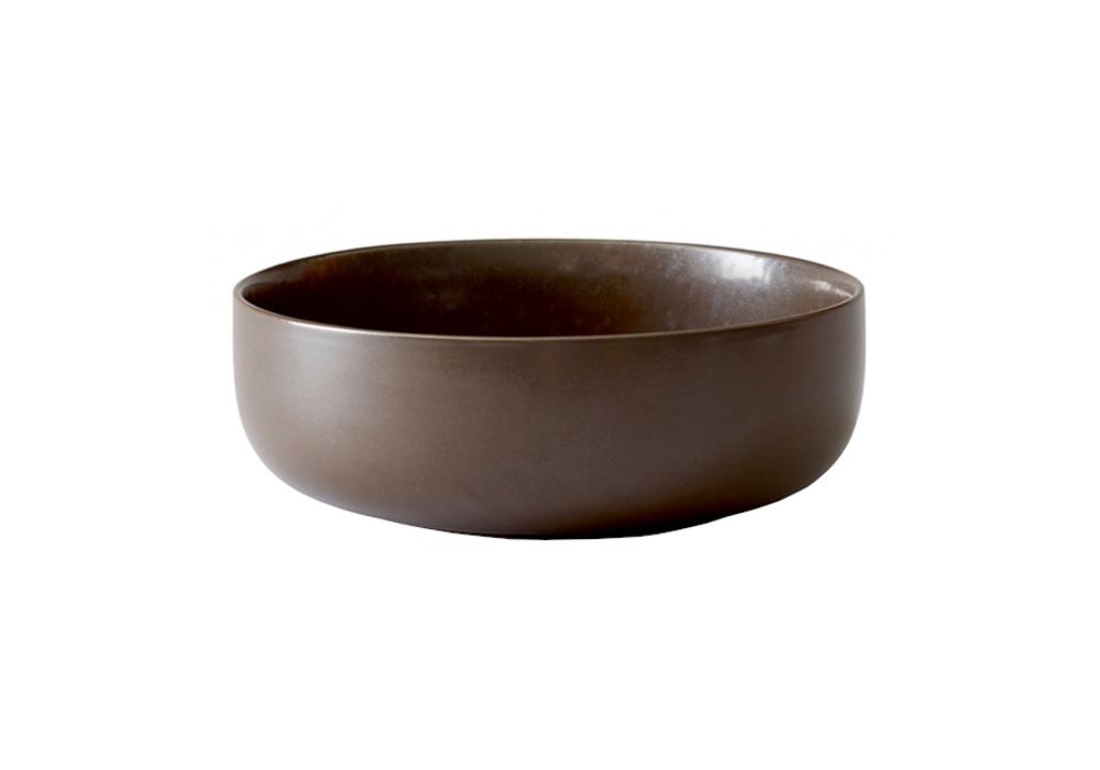 New Norm Dinnerware conçu par Norm Architects pour Audo Copenhagen est un bol réalisé en terre vernissée, finition foncée. Disponible en différentes tailles.