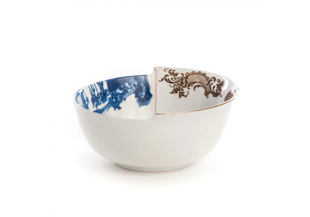 Hybrid Despina conçu par CTRLZAK pour Seletti est un bol en porcelaine blanche créé en combinant deux formes opposées. L'intérieur est décoré de diverses figures et pigments.