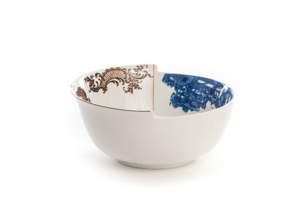 Hybrid Despina conçu par CTRLZAK pour Seletti est un bol en porcelaine blanche créé en combinant deux formes opposées. L'intérieur est décoré de diverses figures et pigments.