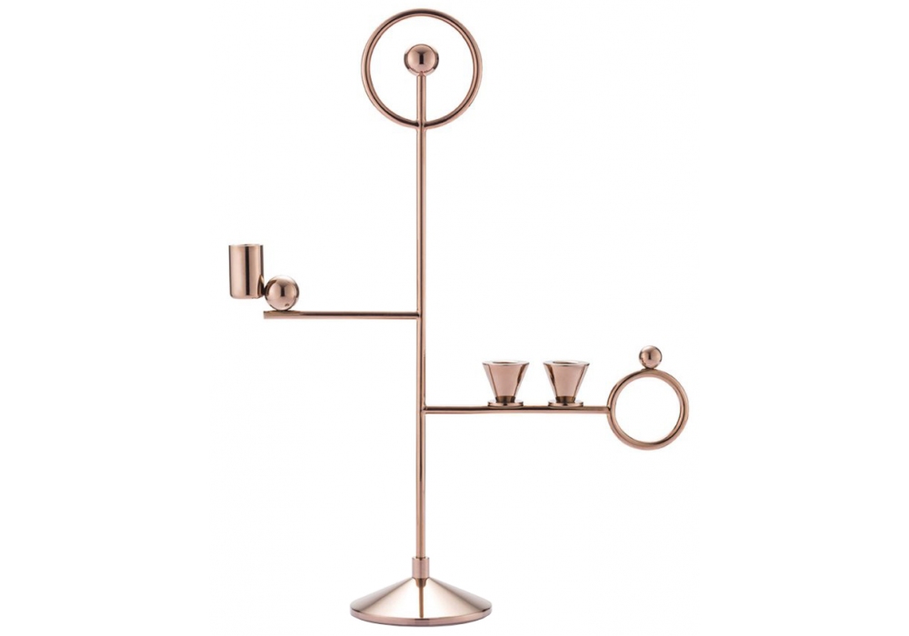 Paris Memphis Copper conçu par Thomas Dariel pour Maison Dada est un bougeoir à base circulaire et structure tubulaire entièrement en métal plaqué cuivre rose brillant. Paris Memphis Copper est disponible en différents modèles.