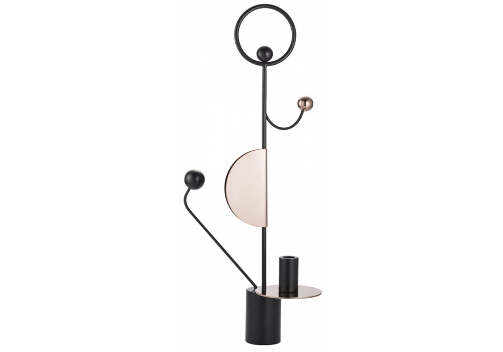 Les Immobiles N°1 conçu par Thomas Dariel pour Maison Dada est un bougeoir à base cylindrique entièrement structuré en métal thermolaqué noir avec des détails en cuivre rose brillant.